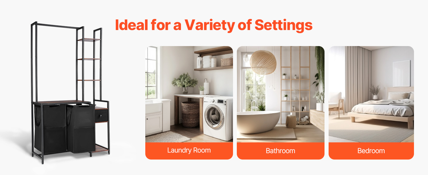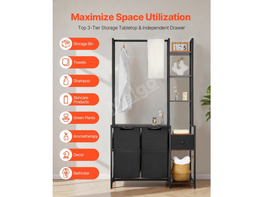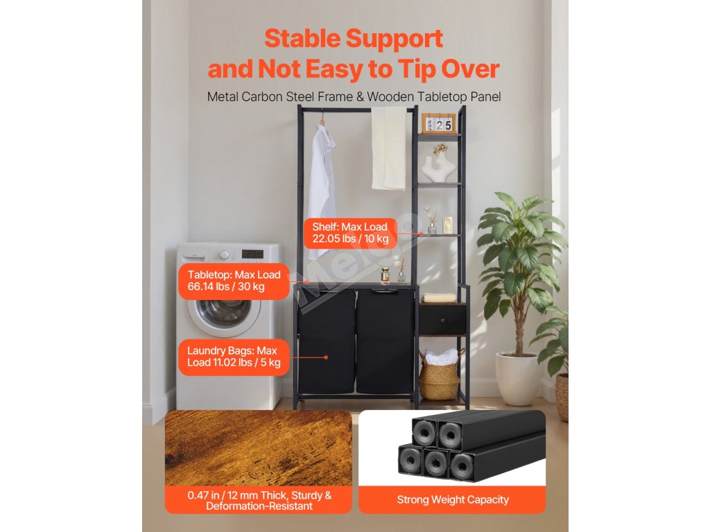 Vhodný do práčovne, kúpeľne alebo spálne. Elegantný čierny dizajn sa hodí do každého interiéru a pomôže vám vytvoriť čistejší a pohodlnejší životný priestor.