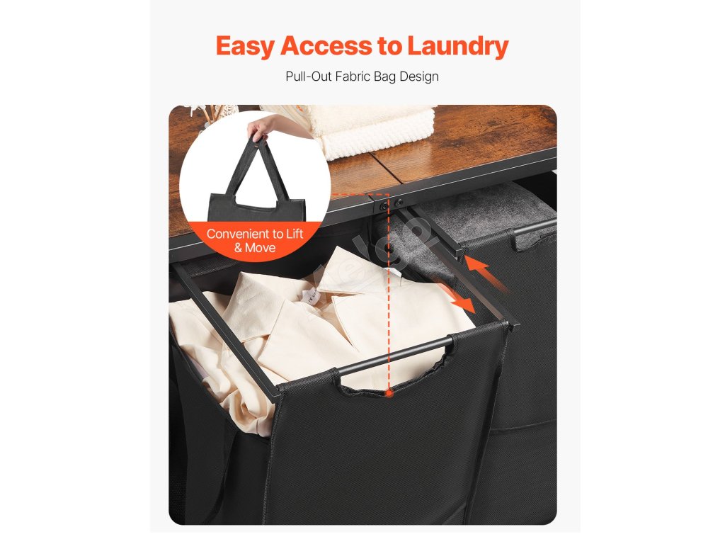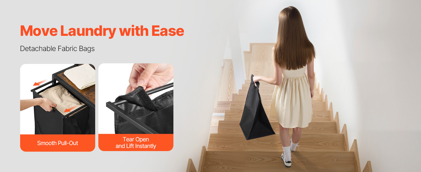 Odnímateľné vrecia s hladkým výsuvným dizajnom a rukoväťami uľahčujú prenášanie oblečenia do práčky na jednu cestu - šetria čas a námahu.