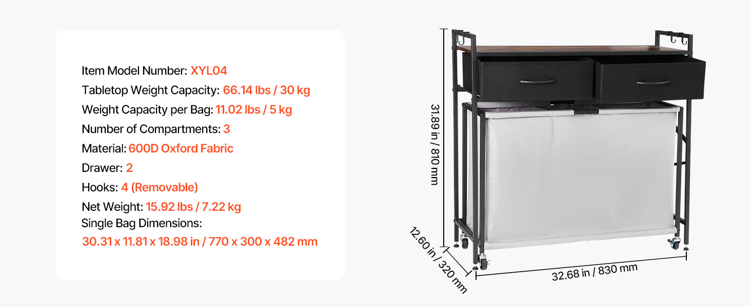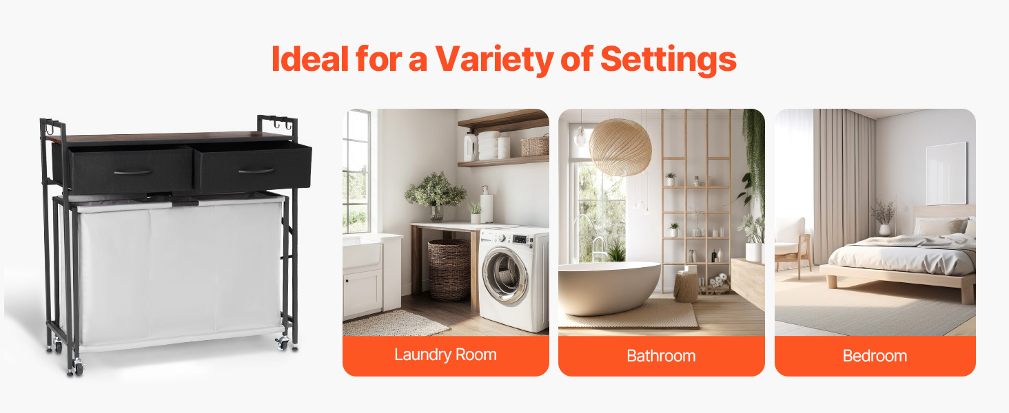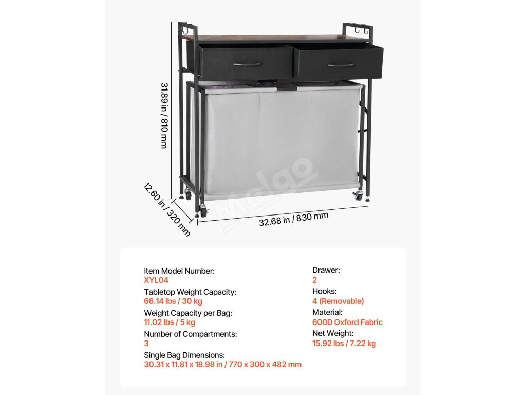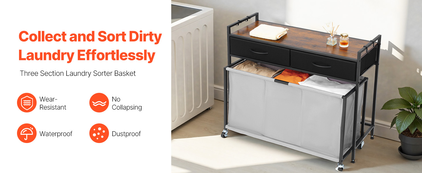 Náš triedič bielizne má zosilnený kovový rám, ktorý poskytuje stabilnú oporu. Nastaviteľné nožičky vyhovujú rôznym typom podláh, zatiaľ čo dvojité blokovacie kolieska udržia kôš bezpečne na mieste. Dodáva sa s odnímateľným háčikom na jednoduché uloženie kľúčov, klobúkov.