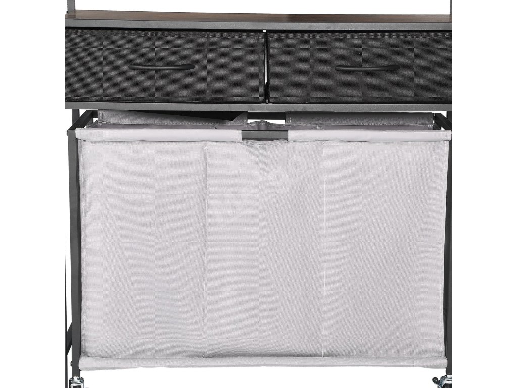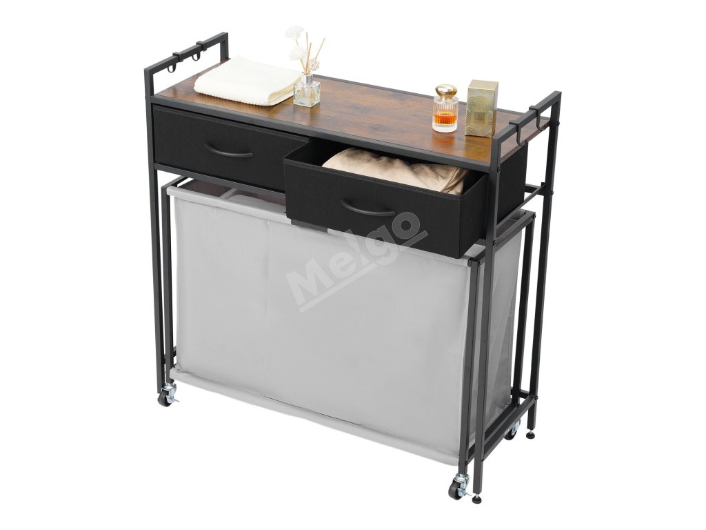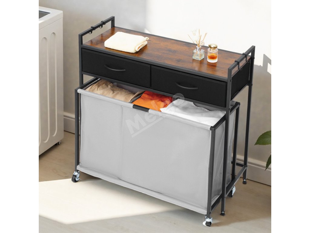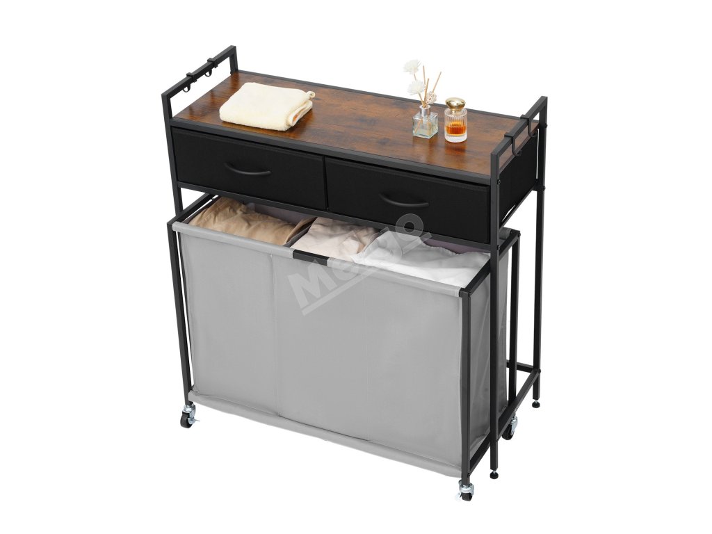 Triedič bielizne 3 sekcie, 2 zásuvky, kolieska, háčiky, drevený vrch