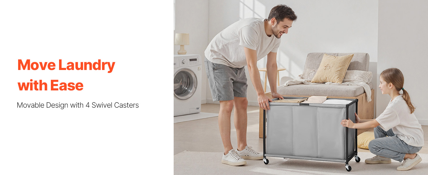 Vylepšený o 4 hladko sa otáčajúce otočné kolieska na jednoduché tlačenie kýmkoľvek, čím sa vyrieši problém s premiestňovaním ťažkých košov na bielizeň.