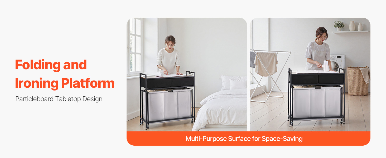Silná vrchná časť z drevotrieskovej dosky sa pod ťarchou neohne - ideálna na skladanie, žehlenie alebo uskladnenie.