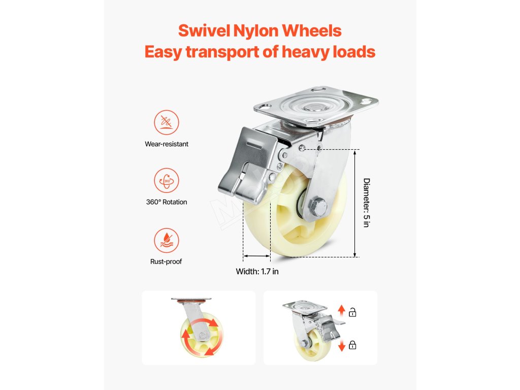 Vozík na vodné skútre s veľkou nosnosťou je vybavený 360° nylonovými kolieskami na plynulé a flexibilné riadenie aj pri veľkom náklade. Rám z uhlíkovej ocele a guľôčkové ložiská zvyšujú nosnosť, zatiaľ čo dve zabrzdené kolesá poskytujú zvýšenú stabilitu pri presunoch pre bezpečný pohyb.