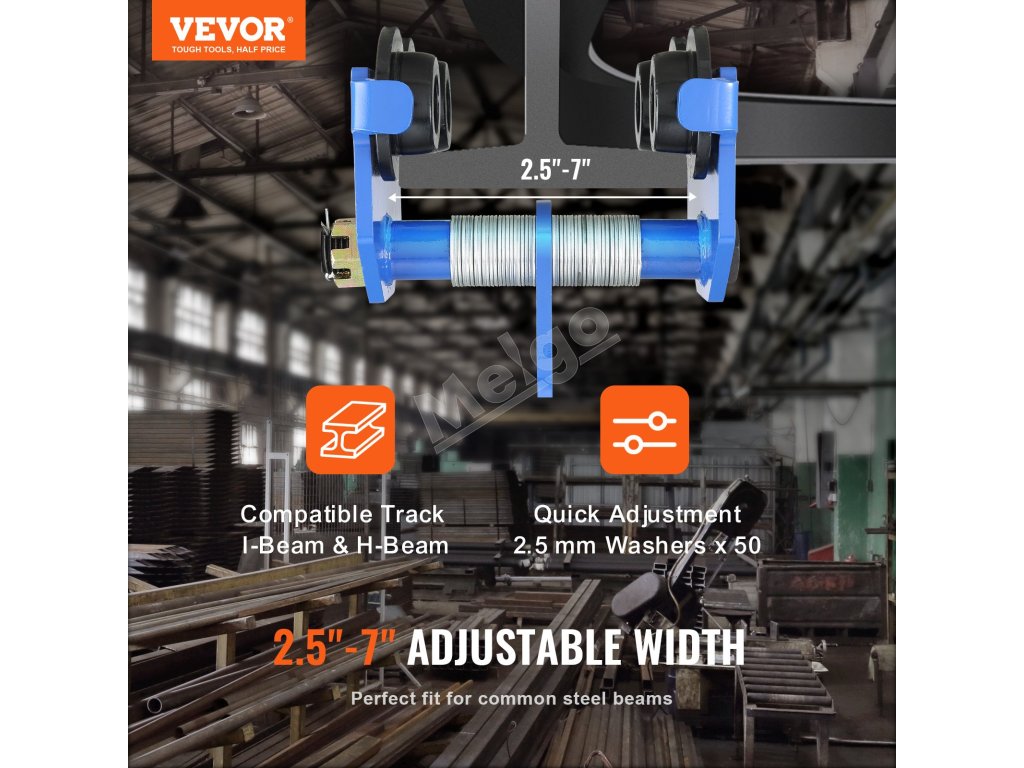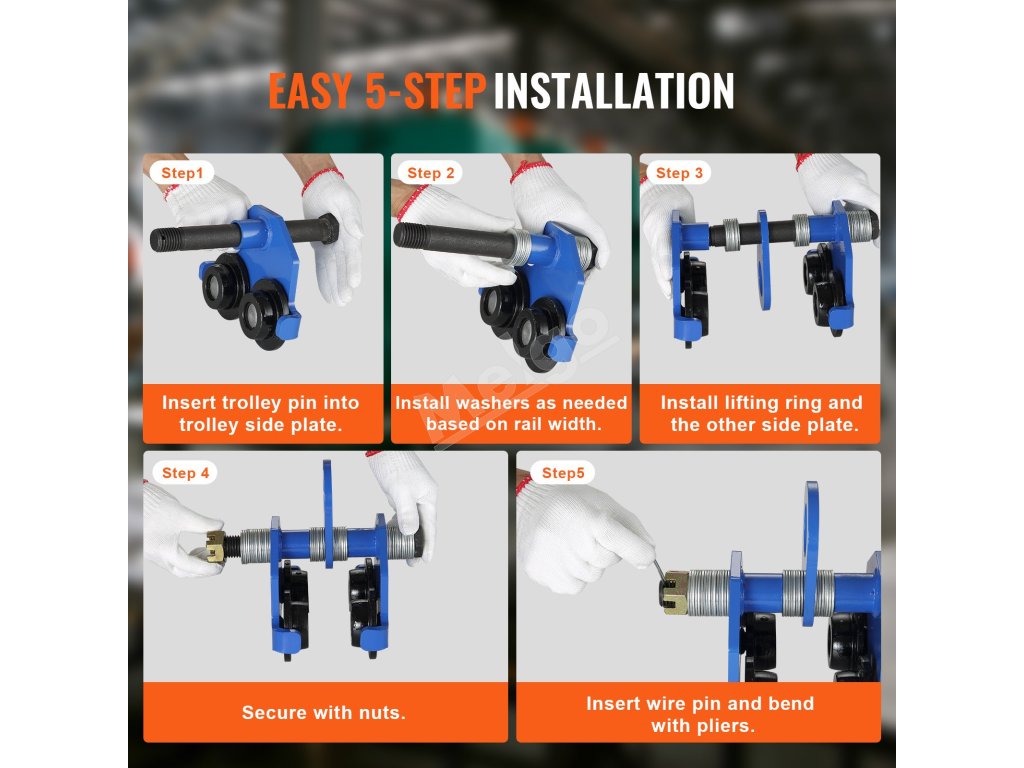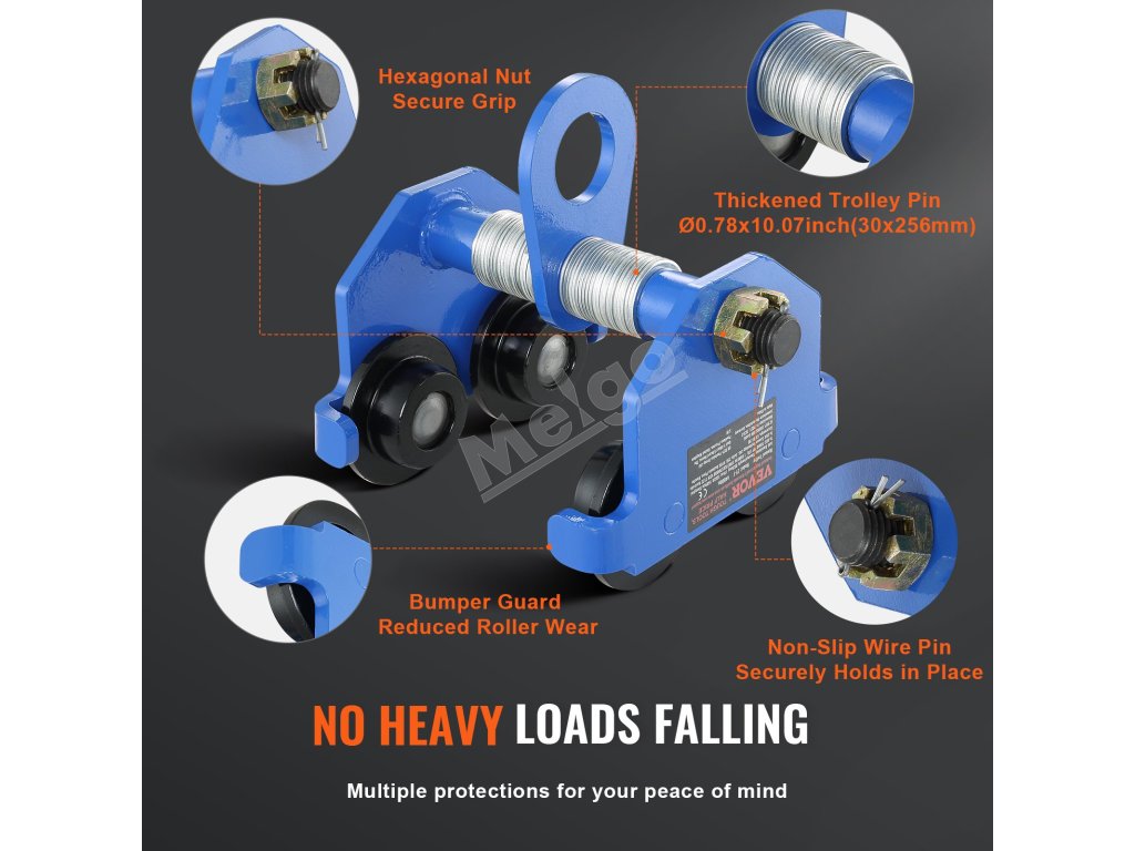 Nosníkový vozík VEVOR dodáva korunovej matici a drôtenému čapu nádych dodatočnej bezpečnosti. Korunovú maticu možno rýchlo utiahnuť bez použitia náradia a drôtený čap sa bezpečne zaistí na mieste, čím poskytuje dvojnásobnú bezpečnosť.