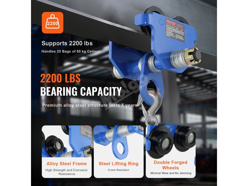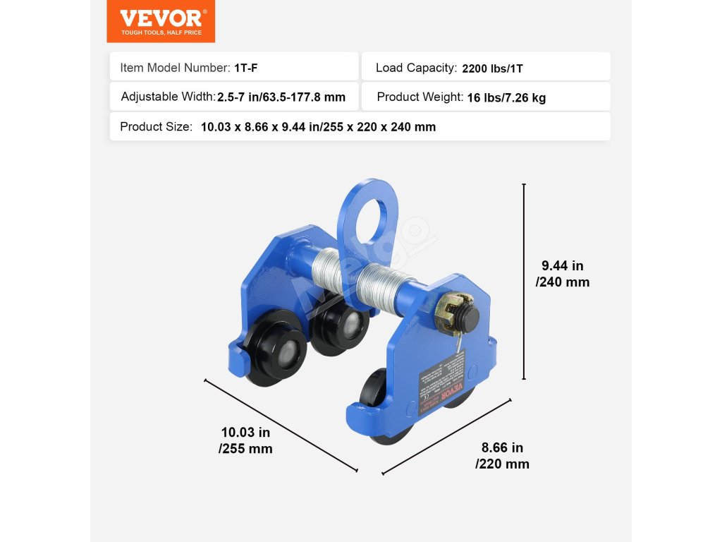 Ručný vozík na i-nosník 2200 lbs/1 ton, 63.5-177.8 mm, dvojkolesový