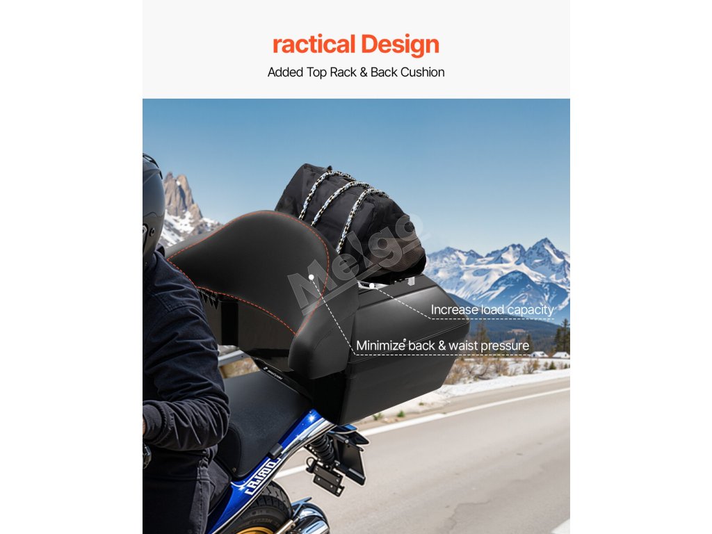 Tento kufor poskytuje dodatočný úložný priestor, oporu chrbta a udržiava vaše vybavenie v bezpečí, vďaka čomu budú vaše jazdy pohodlnejšie a bezproblémové.