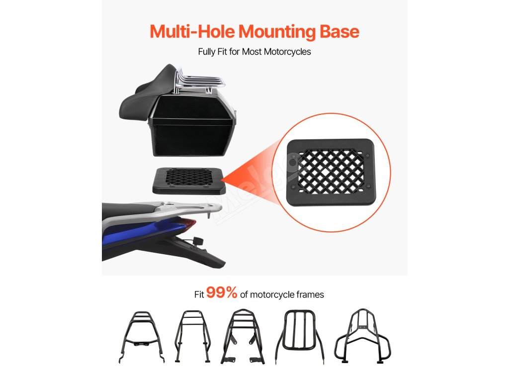 Konštrukcia základne s viacerými otvormi je vhodná pre rôzne nosiče motocyklov, takže inštalácia je rýchla a jednoduchá pre jednu osobu. Nemusíte sa obávať zložitého nastavovania, stačí namontovať a vyraziť!