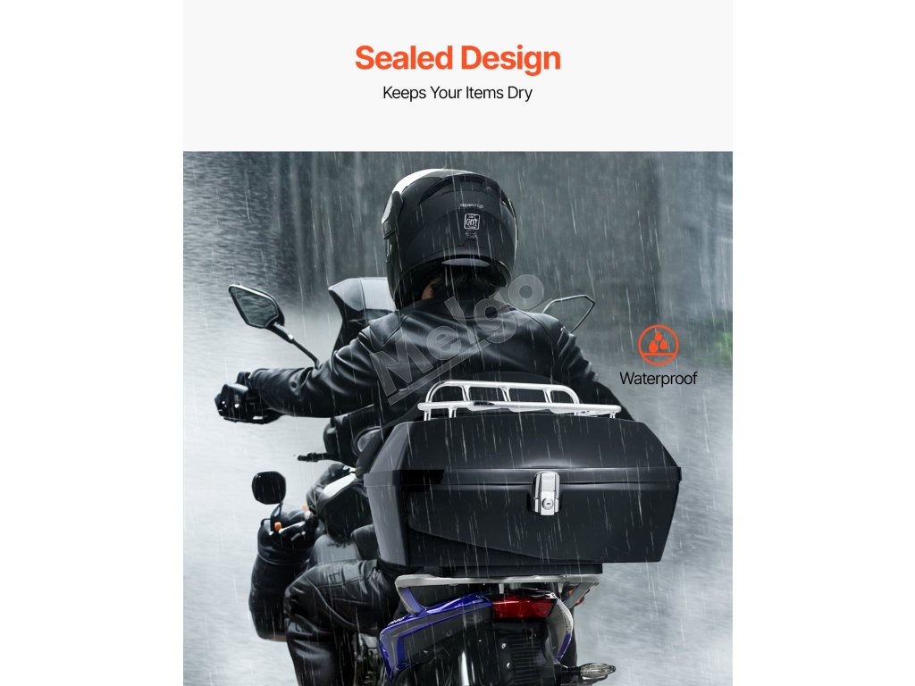 Predmety vo vnútri zadného nosiča na motocykel sú v bezpečí a suchu, takže sa môžete sústrediť na jazdu bez obáv o svoje predmety.