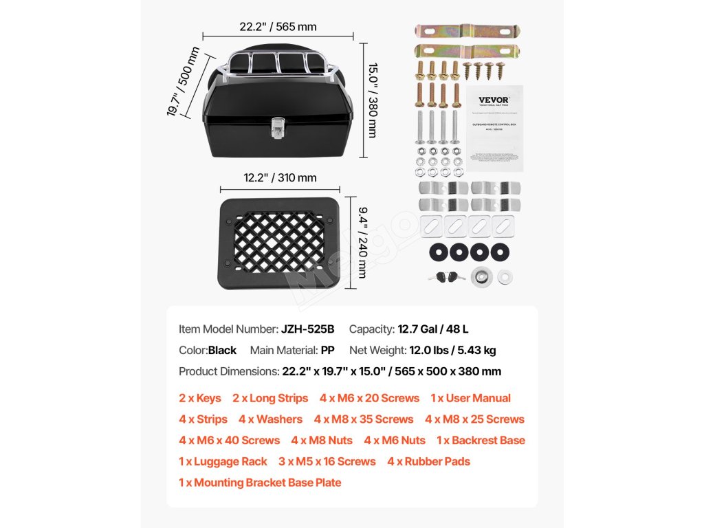 Náš plastový kufor na motorku s horným nosičom ponúka ešte väčšie pohodlie pri každodennom cestovaní. Je odolný voči nárazom a poveternostným vplyvom, takže vaše veci zostanú v bezpečí a v suchu. Pridaná koža poskytuje účinné tlmenie nárazov a zadný vankúš zmierňuje bedrovú záťaž.