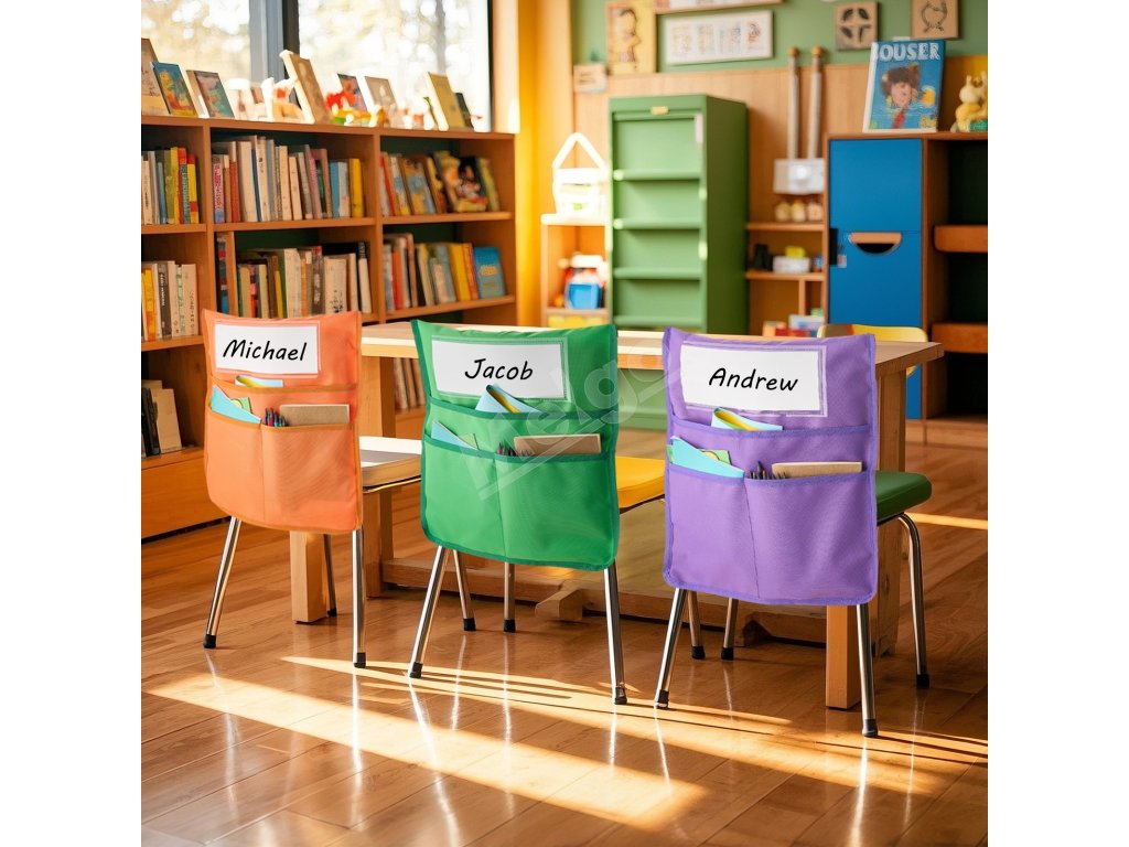 Vrecká na operadlo stoličky 12 ks, 17×19 inches, 6 farieb, s menovkami