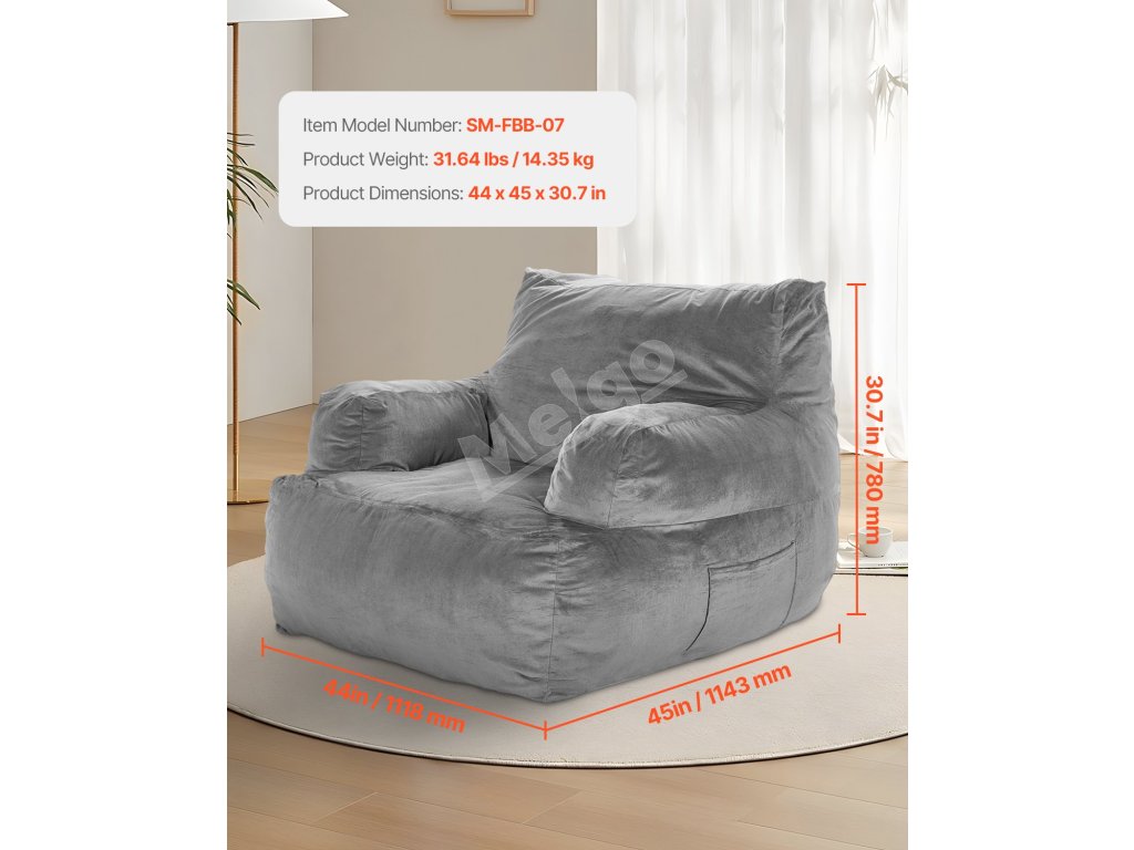 Tento sedací vak bean bag s podrúčkami vyplnený pamäťovou penou s vysokou hustotou ponúka silnú, pružnú oporu, ktorá si zachováva svoj tvar aj po dlhých hodinách sedenia alebo ležania.