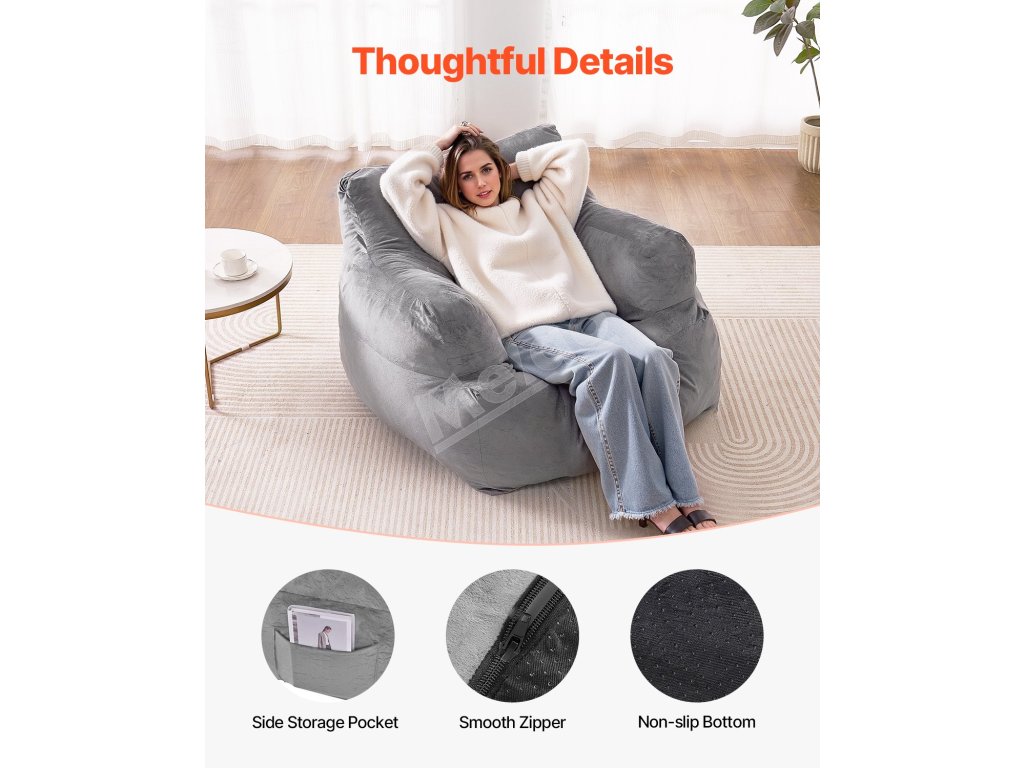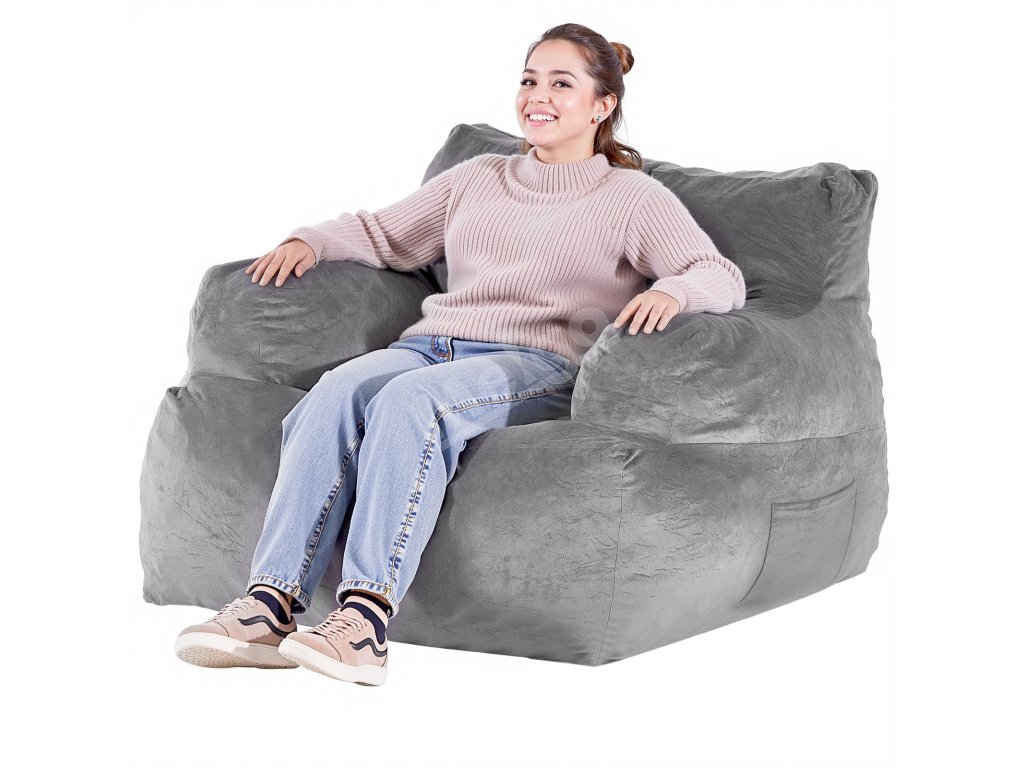 Sedací vak pre dospelých s opierkami, vysokohustotná pena, sivý