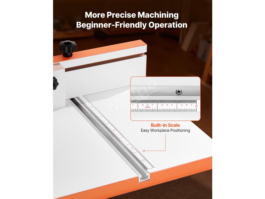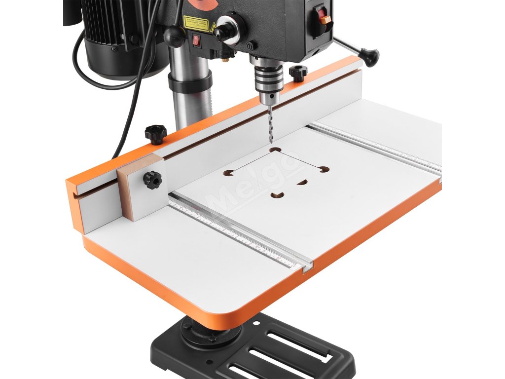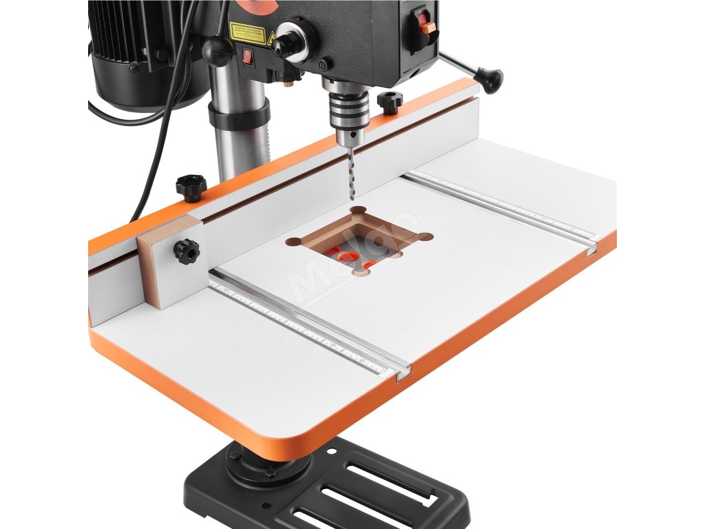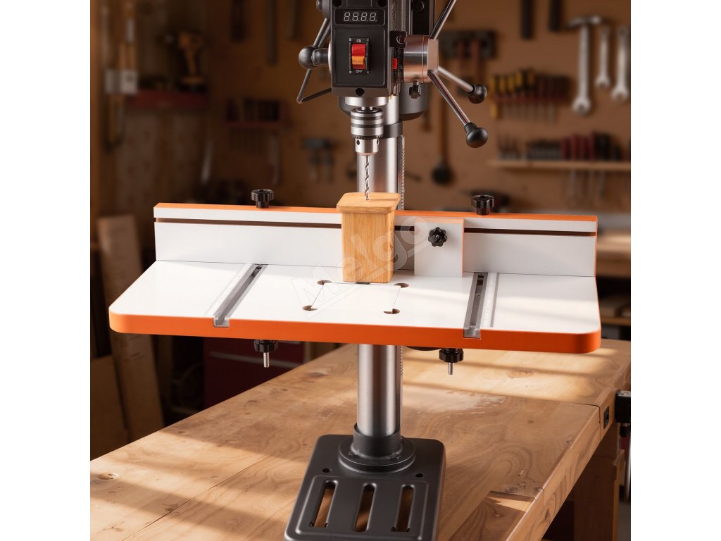 Stôl pre vŕtačku obsahuje presnú stupnicu, ktorá zjednodušuje nastavenie pre začiatočníkov, umožňuje rýchle polohovanie a znižuje počet pokusov a omylov. Nie sú potrebné žiadne ďalšie meracie nástroje.