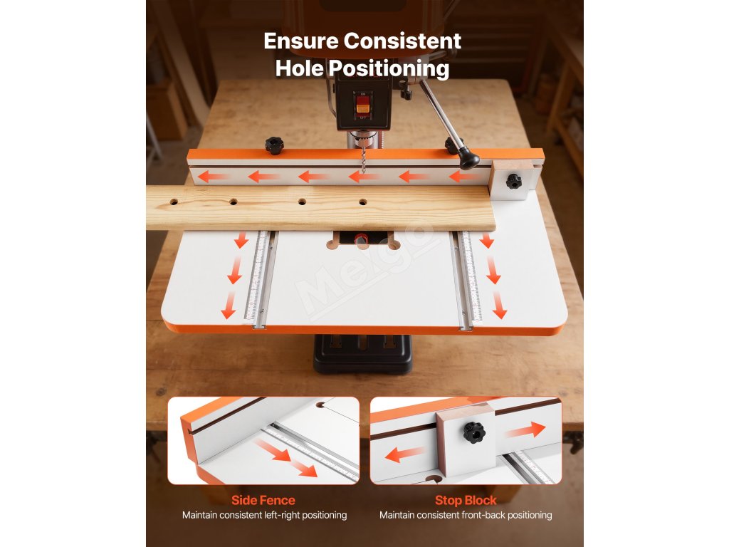 Tento stôl vŕtačky je vybavený nastaviteľným dorazom, ktorý umožňuje rýchle polohovanie obrobku a zabezpečuje konzistentné výsledky vŕtania. Zvýšte presnosť a efektívnosť spoľahlivým polohovaním.