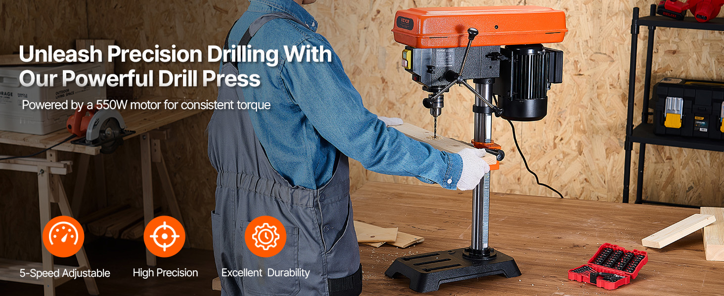 Náš stolový vŕtací lis s celočlánkovým indukčným motorom a 5-stupňovou reguláciou otáčok zvládne vaše úlohy pri práci s drevom, kovom alebo iné vŕtanie. S röntgenovým polohovaním pre presnú presnosť. A pracovný stôl s nastaviteľným sklonom 45° poskytujú flexibilitu pre komplexné potreby vŕtania.