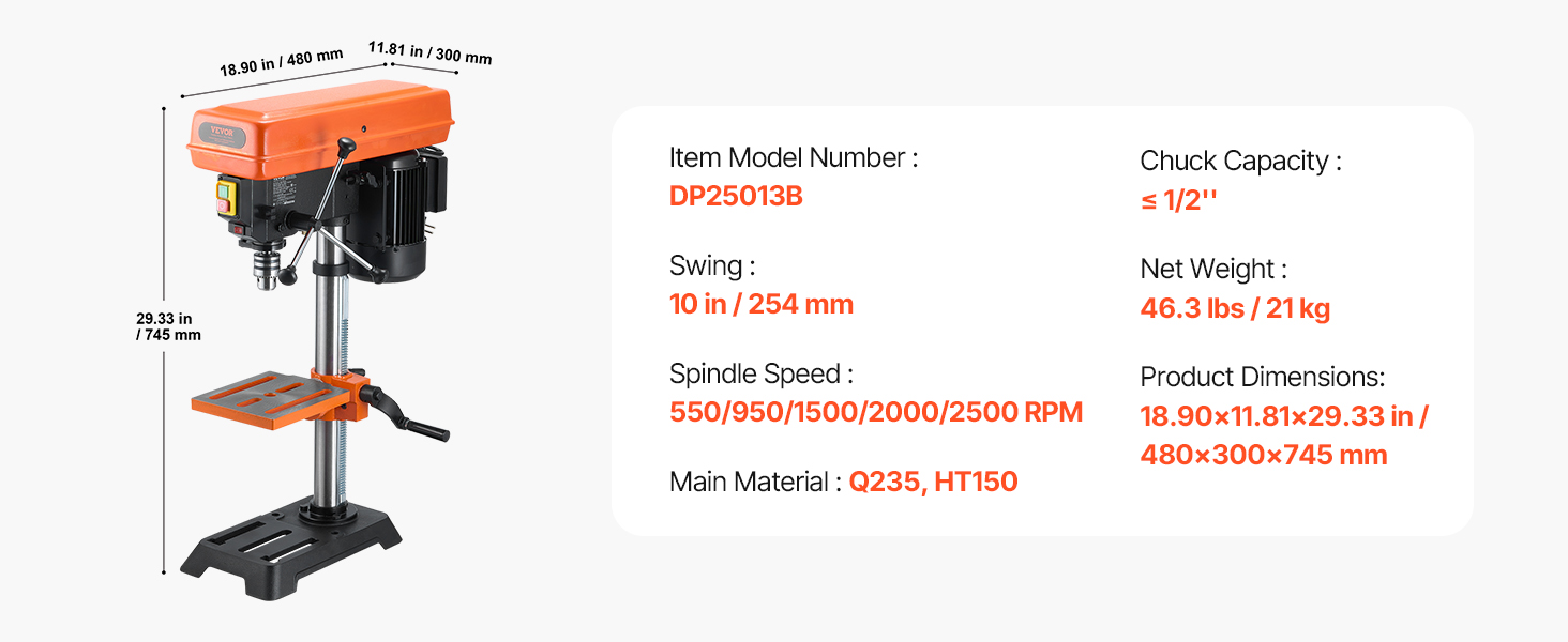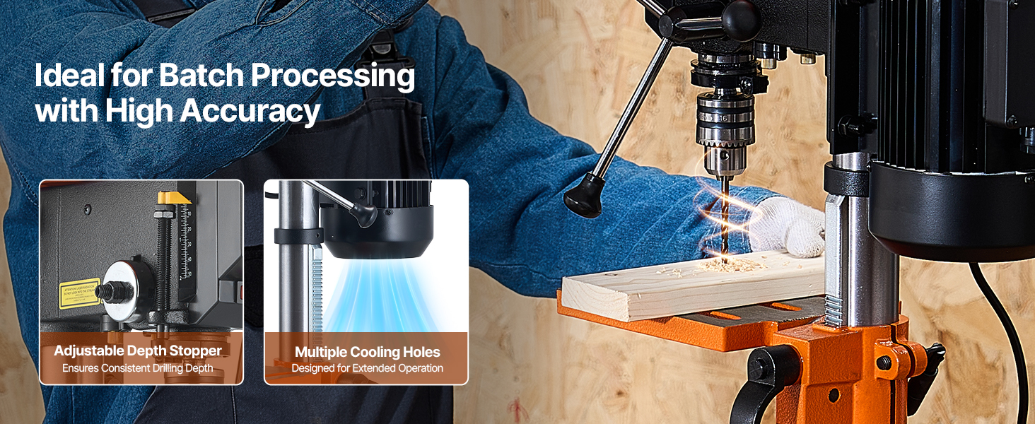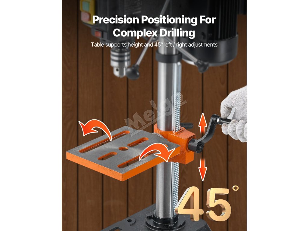 Náš stolový vŕtací lis s celočlánkovým indukčným motorom a 5-stupňovou reguláciou otáčok zvládne vaše úlohy pri práci s drevom, kovom alebo iné vŕtanie. S röntgenovým polohovaním pre presnú presnosť. A pracovný stôl s nastaviteľným sklonom 45° poskytujú flexibilitu pre komplexné potreby vŕtania.