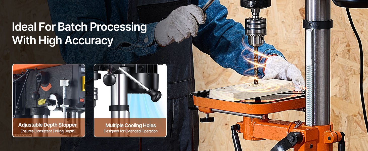 Je vybavený nastaviteľným hĺbkovým dorazom s 90 mm zdvihom vretena, náš stolový vŕtací lis umožňuje nastaviť a zablokovať hĺbku vŕtania pre konzistentné výsledky. Okrem toho je vysokokvalitný chladiaci systém navrhnutý tak, aby efektívne zvládal úlohy hromadného obrábania.