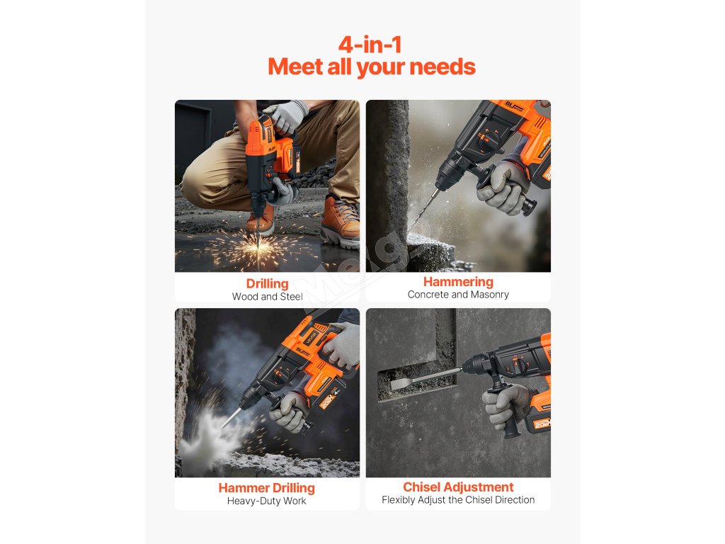 Táto aku vŕtačka s príklepom je vybavená vysokokapacitnou batériou s kapacitou 4 Ah a poskytuje predĺžený čas chodu, čím znižuje problémy s častým nabíjaním a pomáha vám pracovať na stavenisku efektívnejšie.