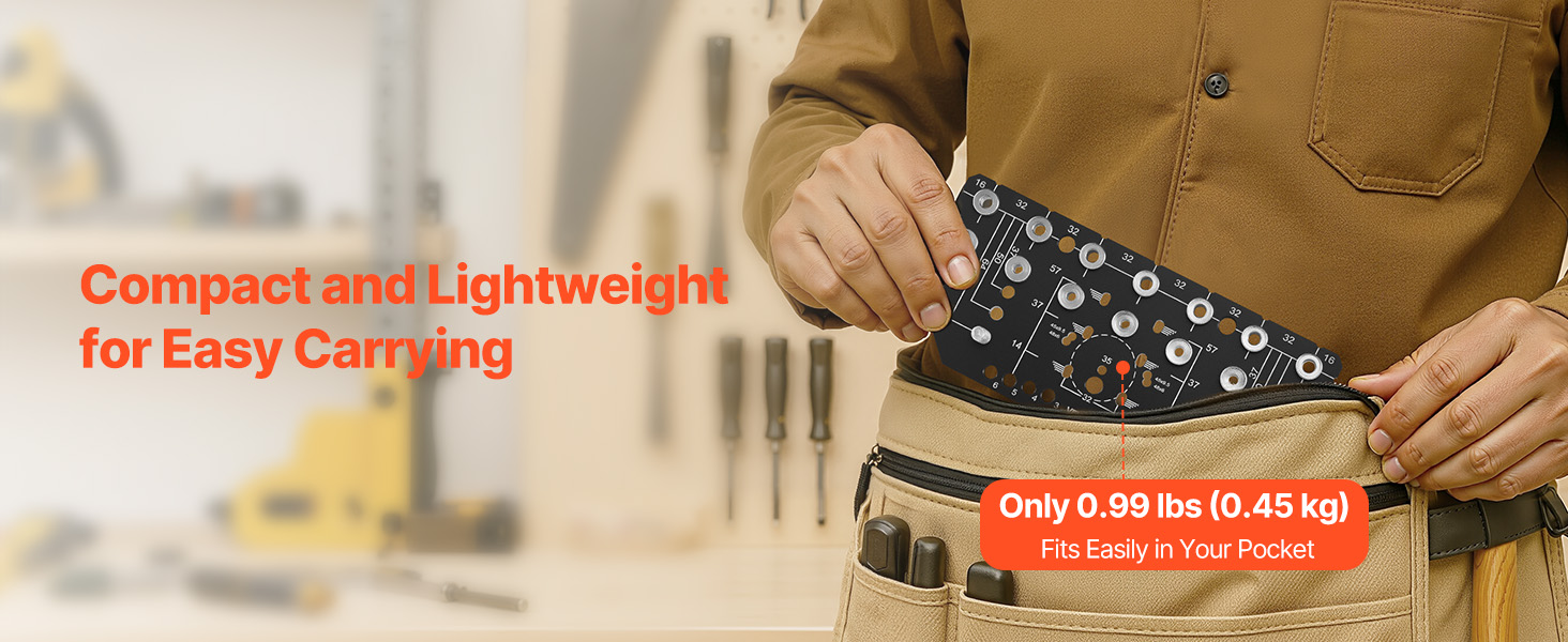 Vďaka kompaktným rozmerom a nízkej hmotnosti sa tento policový vŕtací prípravok ľahko prenáša, či už pracujete v dielni alebo na stavbe. Napriek malým rozmerom poskytuje silnú upínaciu podporu, čím zakaždým zabezpečuje presné umiestnenie otvoru.