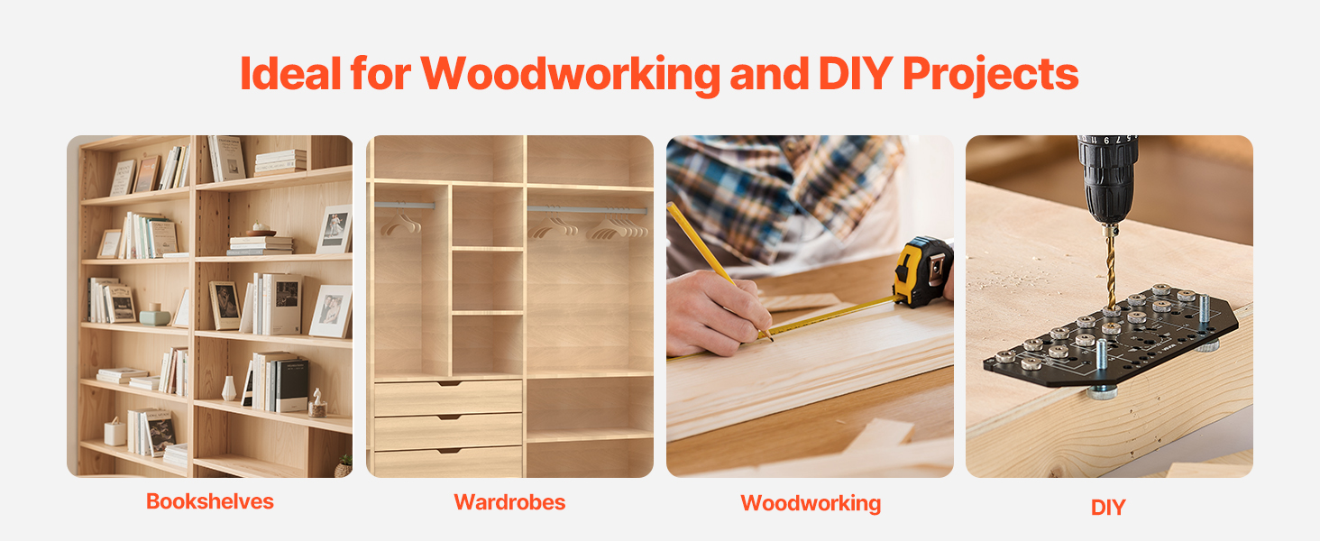 Tento prípravok na otvory do políc, ktorý je ideálny na stavbu políc na knihy, montáž skríň, drevené spoje a kreatívne projekty pre domácich majstrov, poskytuje presné zarovnanie a rýchle upnutie na dosiahnutie trvalo presných výsledkov, čím výrazne zvyšuje efektivitu práce.