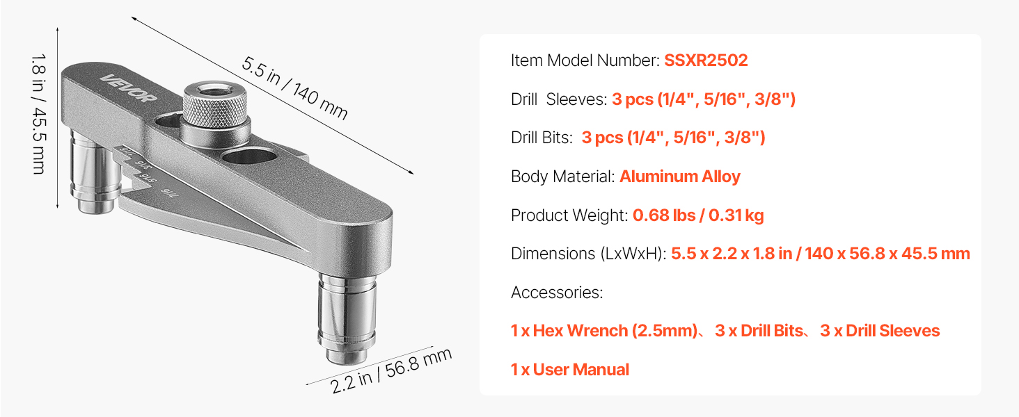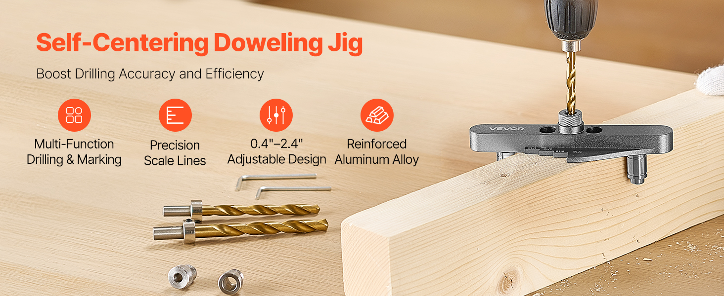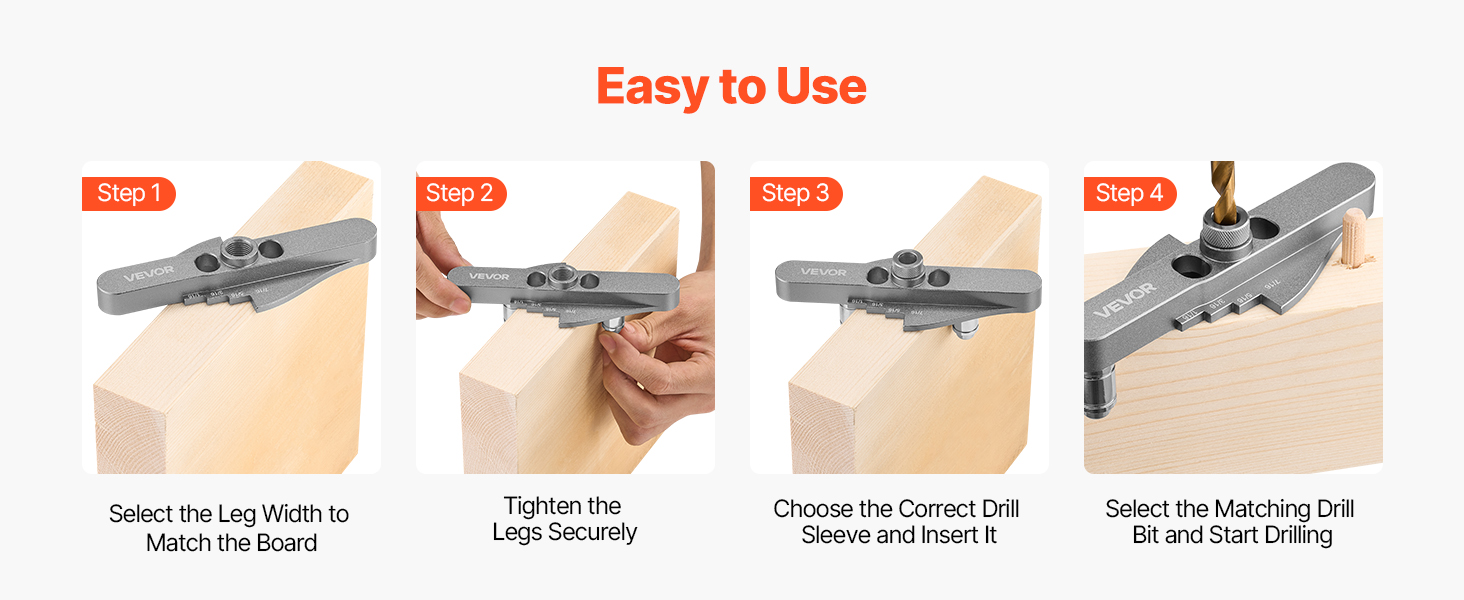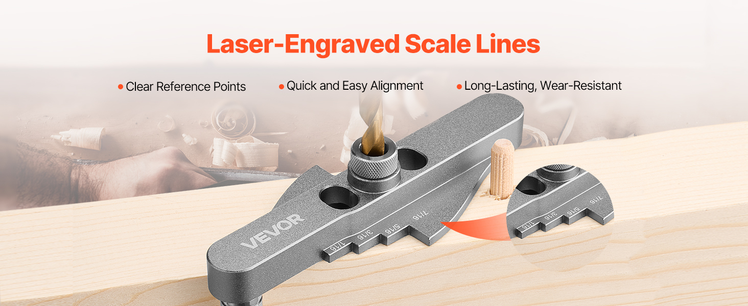 Praktická konštrukcia zaisťuje vždy presné polohovanie, čím zvyšuje efektivitu a presnosť práce. Náš vŕtací prípravok na rovné otvory je ideálny na projekty, ako sú knižnice, stoly a dekoratívne predmety.