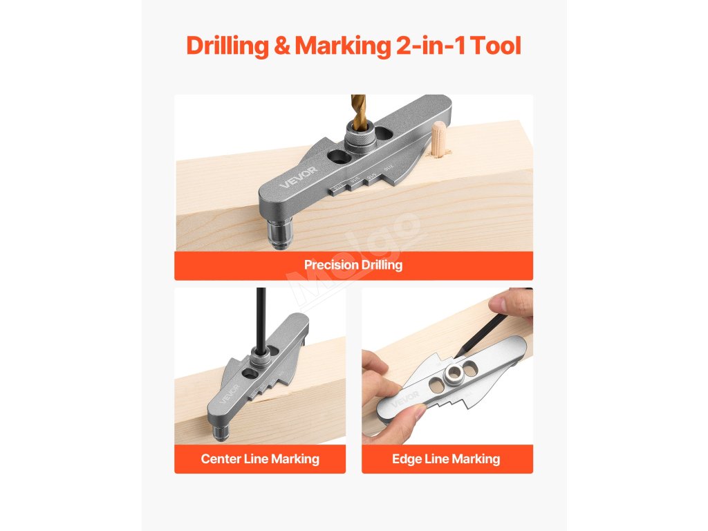 Tento samocentrovací kolíkovací prípravok je multifunkčný nástroj 2 v 1, ideálny na vŕtanie a značenie. Jeho funkcia presného polohovania zaručuje, že každý otvor bude presne tam, kde ho potrebujete, čím sa znižuje počet chýb a zvyšuje efektivita, je určený pre profesionálov aj domácich majstrov.