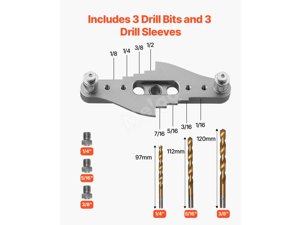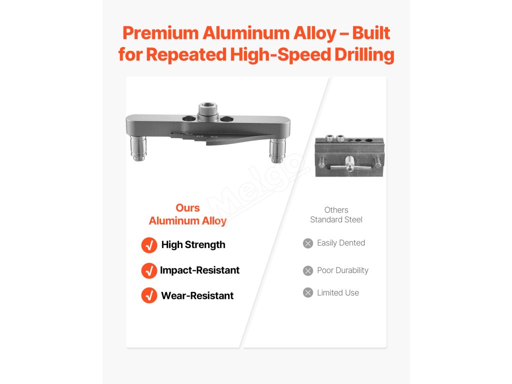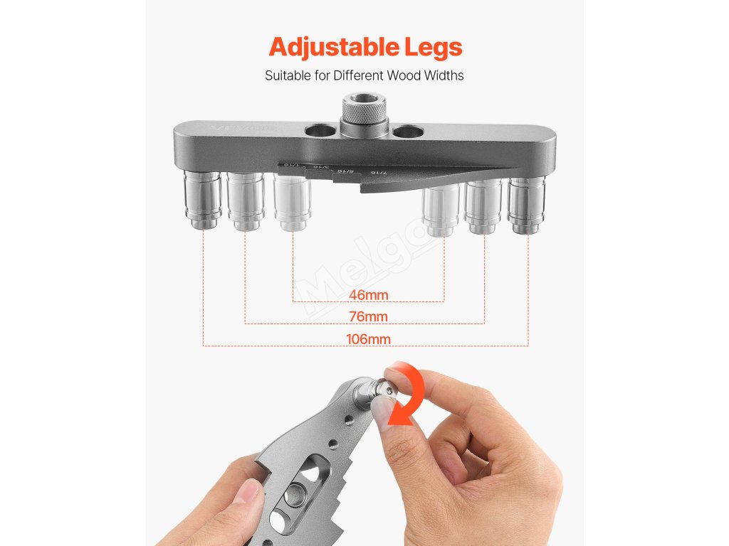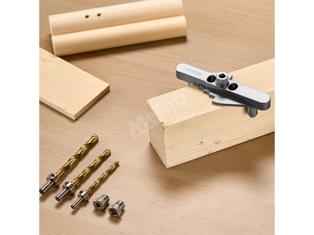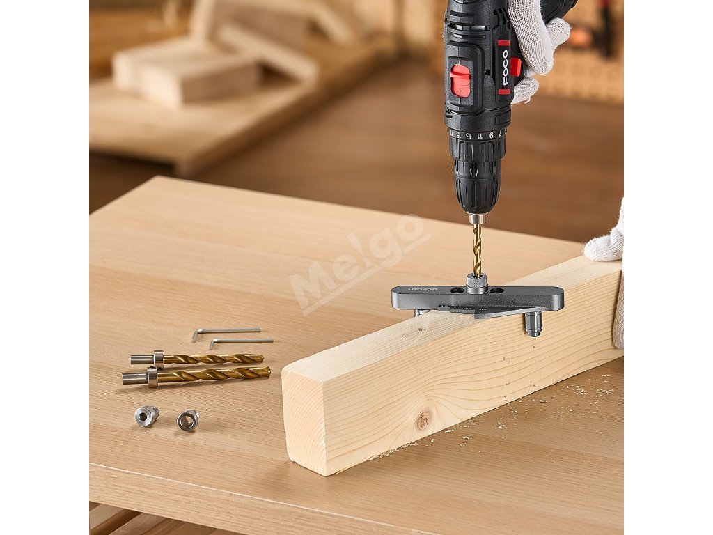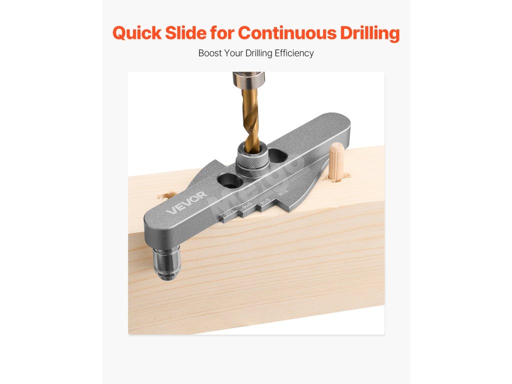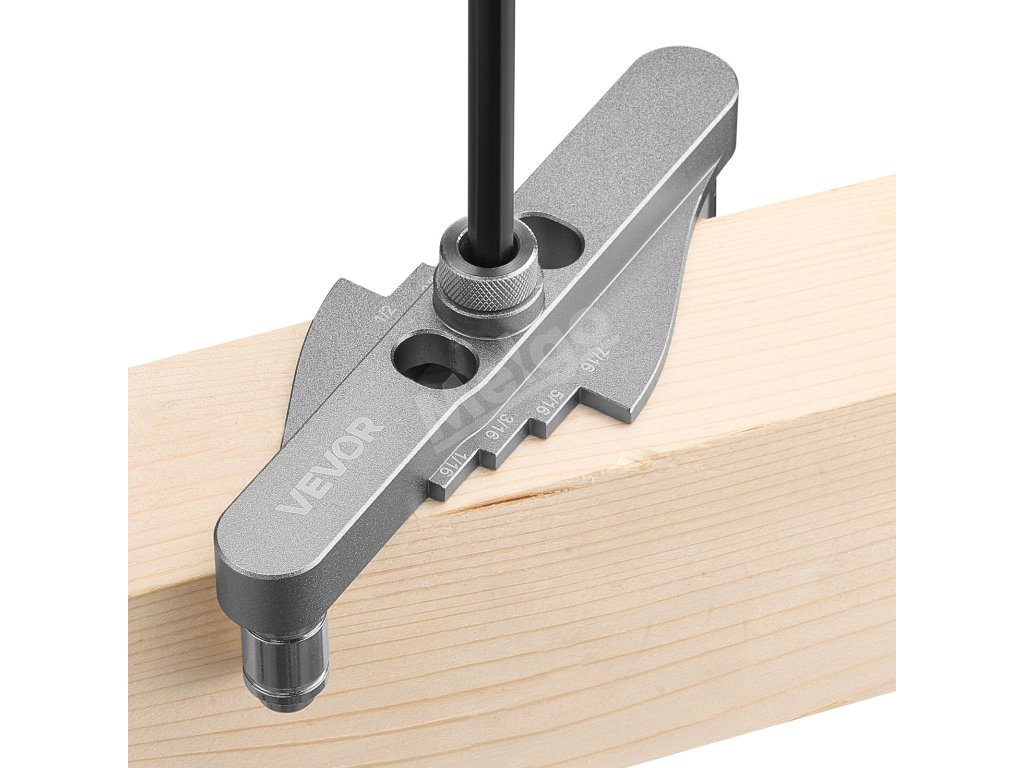 Praktická konštrukcia zaisťuje vždy presné polohovanie, čím zvyšuje efektivitu a presnosť práce. Náš vŕtací prípravok na rovné otvory je ideálny na projekty, ako sú knižnice, stoly a dekoratívne predmety.