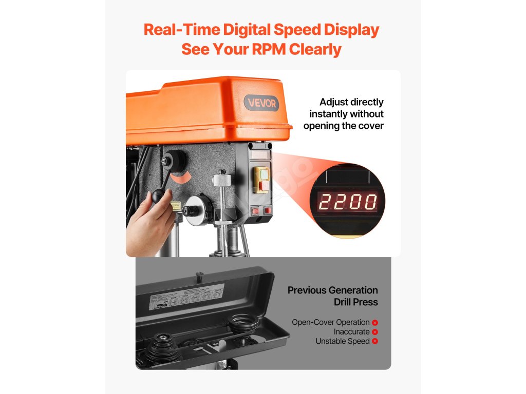 Táto stolová vŕtačka je vybavená vysoko presným vretenom, X-laserovým polohovaním a LED osvetlením a poskytuje plynulé vŕtanie s nízkymi vibráciami pre presné výsledky. S rozmachom 305 mm a nastaviteľnými otáčkami od 340 do 2200 ot/min spracováva rôzne materiály a úlohy s vysokou účinnosťou.