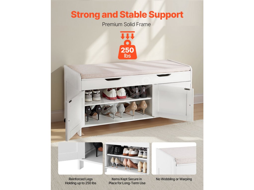 Naša lavica na topánky má pevnú a stabilnú konštrukciu s vynikajúcou nosnosťou. Ľahko unesie viacero sediacich osôb na prezúvanie topánok bez deformácie alebo poškodenia, pričom poskytuje spoľahlivú a dlhotrvajúcu oporu.