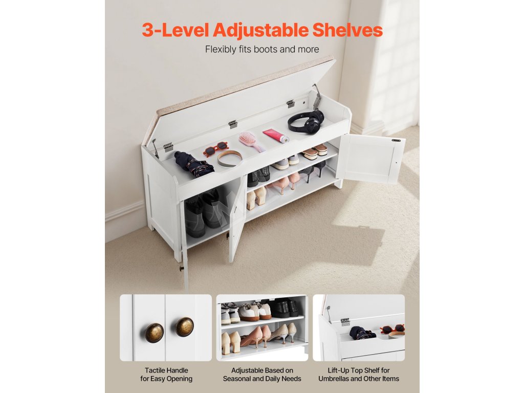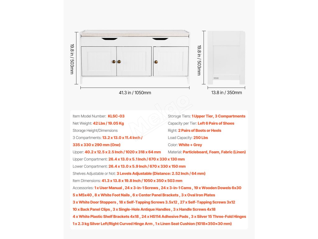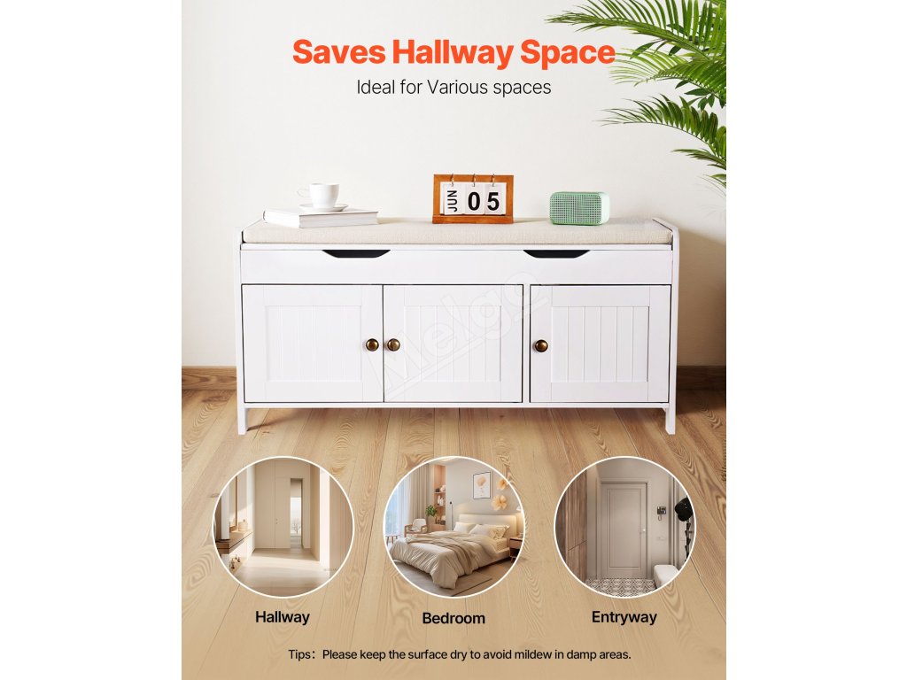 Lavica do predsiene 1050×350×503 mm, 3 skrinky, sedák, 250lbs