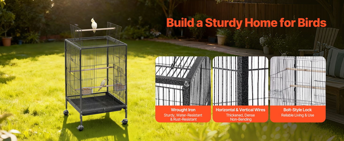 Klietka pre vtáky cockatiel je vyrobená z kovaného železa s vodoodolným a protihrdzavým práškovým náterom. Vďaka zosilneným štvorcovým rúrkam, konštrukcii vystuženej drôtom klietky a pevne uzamknutým dvierkam vytvára spoľahlivý domov pre vtáky.
