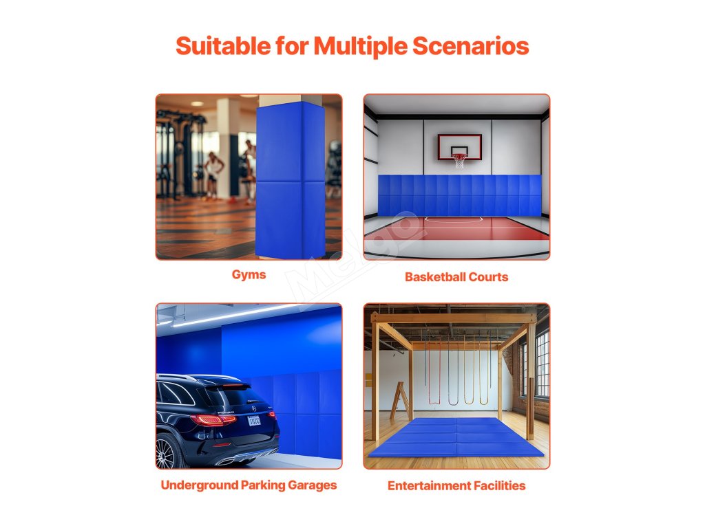 Toto polstrovanie stien v telocvični, vyrobené z prvotriedneho PVC materiálu, je odolné proti opotrebovaniu a roztrhnutiu, vďaka čomu časom nevybledne ani sa nedeformuje. Plochá konštrukcia s veľkými rozmermi umožňuje spojenie viacerých chráničov na vyplnenie celých stien, čím sa znižuje náraz pre športovcov. Jednoduchá inštalácia, ktorá poskytuje bezpečnosť pri hre.