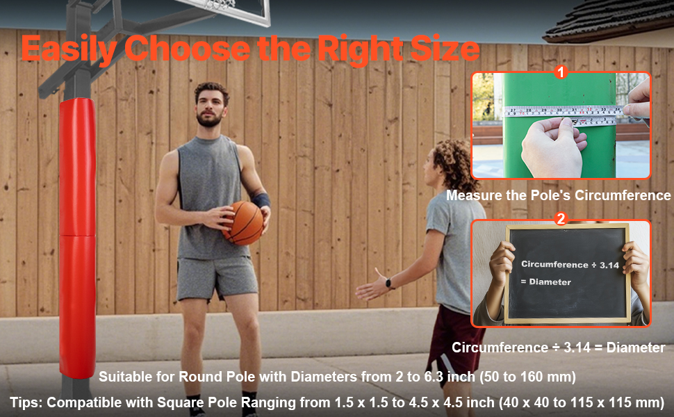 Toto polstrovanie basketbalovej tyče uľahčuje meranie obvodu tyče a hodí sa na okrúhle tyče s priemerom 2-6,3 palca (50-160 mm). Hodí sa aj na štvorcové tyče s rozmermi 1,5x1,5-4,5x4,5 palca (40x40-115x115 mm). Vyberte si rýchlo a presne pre ideálne prispôsobenie a lepší používateľský zážitok.