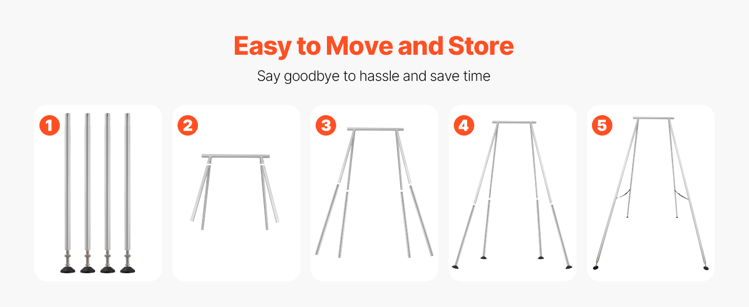 Zažite novú úroveň rovnováhy s týmto 9,6ft/3m rámom stojana na jogu s pevnou oceľovou konštrukciou. Vďaka trojuholníkovej konštrukcii je stabilný počas každej pozície. Odnímateľný rám umožňuje jednoduché skladovanie, zatiaľ čo nastavenie bez použitia náradia udrží vašu rutinu plynulú kdekoľvek.