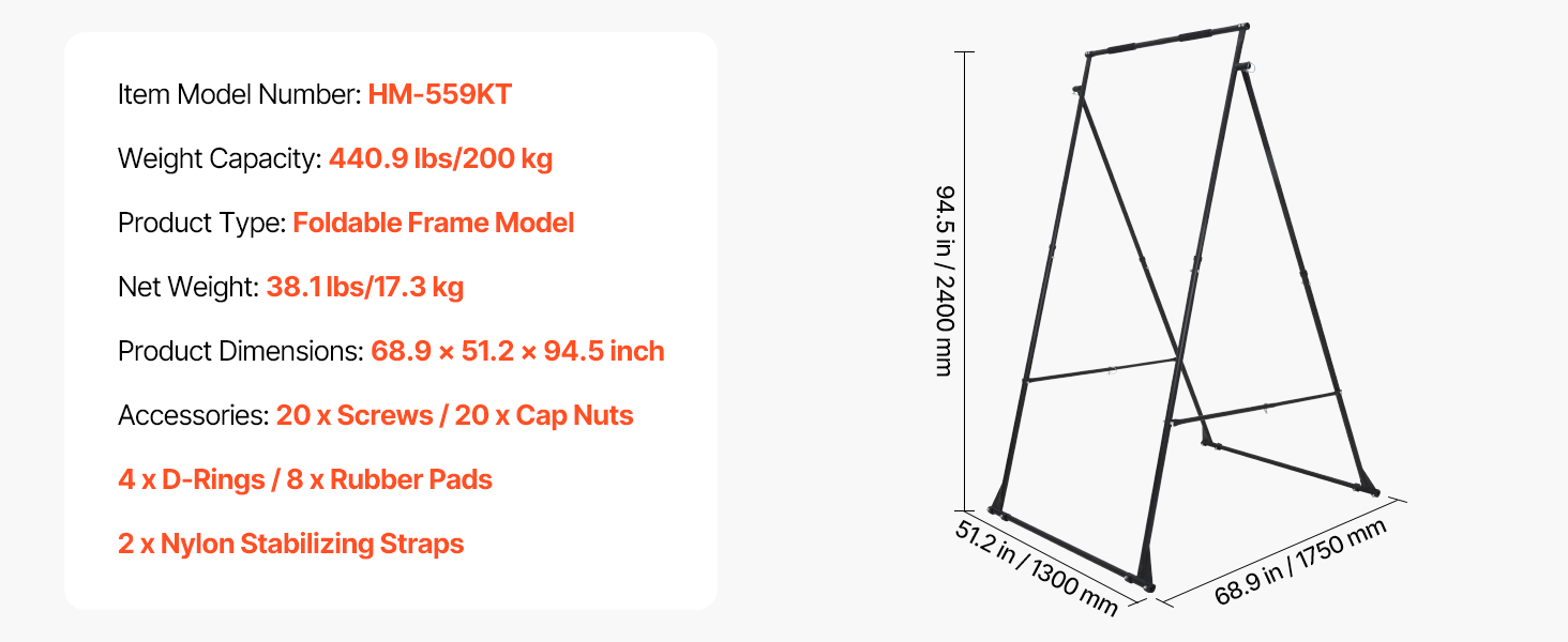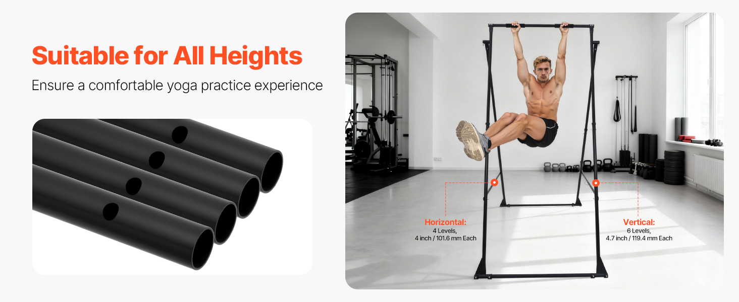 Zažite novú úroveň rovnováhy s 440,9 lbs/200 kg záťažou tohto rámu stojana na jogu s pevnou oceľovou konštrukciou. Postavený pre stabilitu s trojuholníkovou konštrukciou zostáva stabilný počas každej pozície. Skladací rám umožňuje jednoduché skladovanie, zatiaľ čo nastavenie bez použitia náradia udrží vašu rutinu plynulú kdekoľvek.