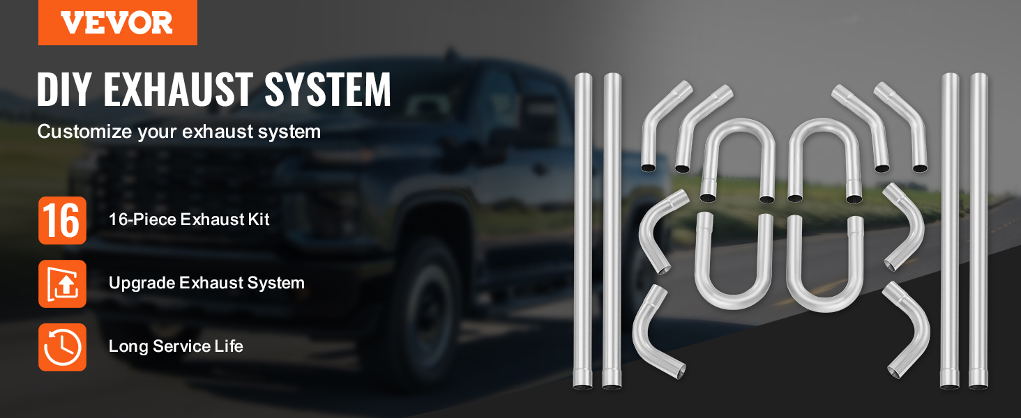 Táto 16-dielna univerzálna súprava automobilových výfukov obsahuje všetky potrebné rúrky na úpravu alebo opravu výfukového systému vášho vozidla, vďaka čomu je vhodná na projekty výfukov "urob si sám". Prispôsobte si systém na základe špecifikácií vozidla a osobných preferencií, aby ste dosiahli optimálny výkon a zvuk.