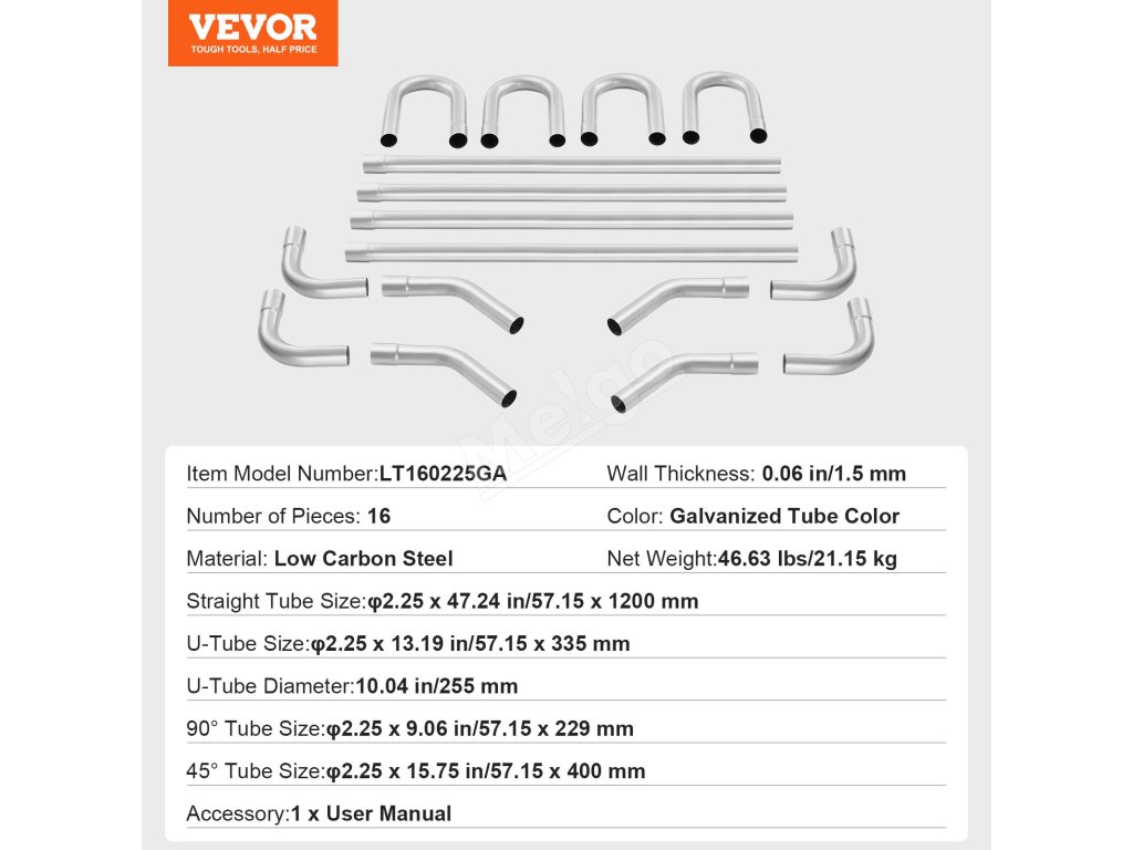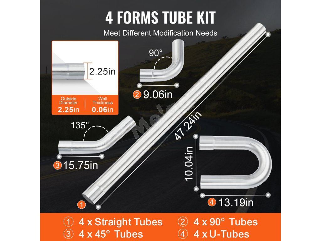 Táto 16-dielna univerzálna súprava automobilových výfukov obsahuje všetky potrebné rúrky na úpravu alebo opravu výfukového systému vášho vozidla, vďaka čomu je vhodná na projekty výfukov "urob si sám". Prispôsobte si systém na základe špecifikácií vozidla a osobných preferencií, aby ste dosiahli optimálny výkon a zvuk.