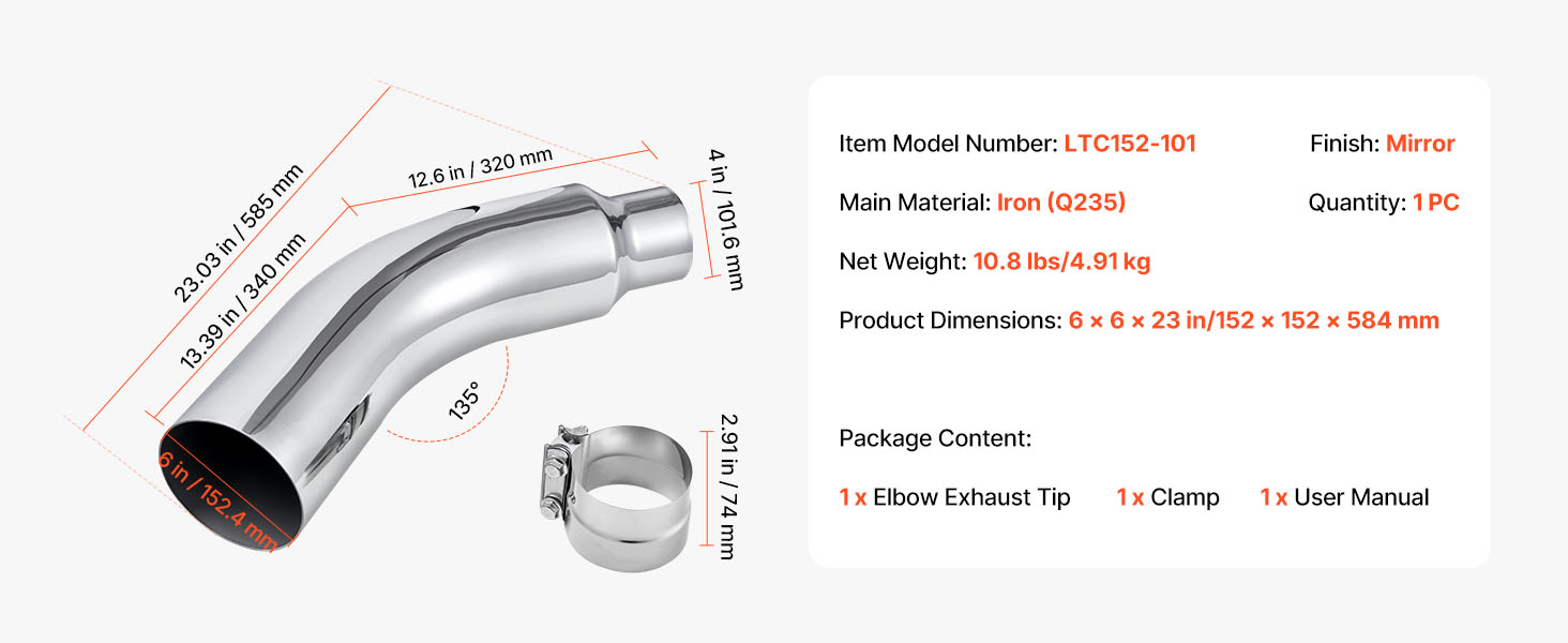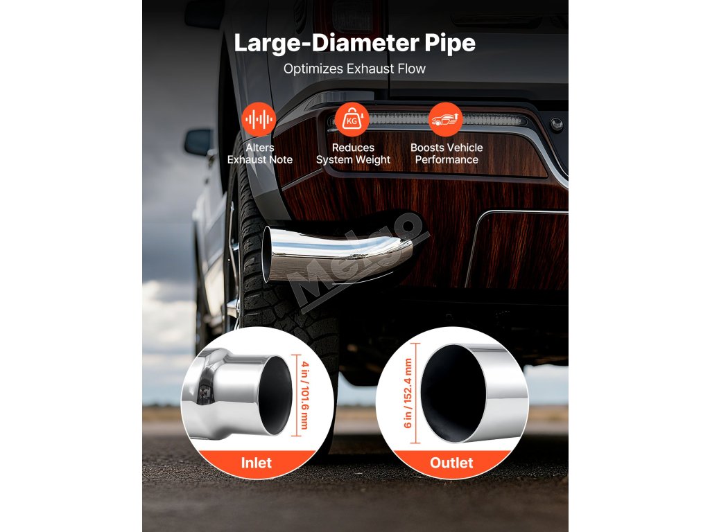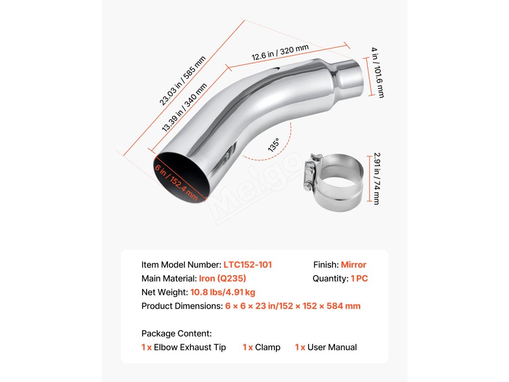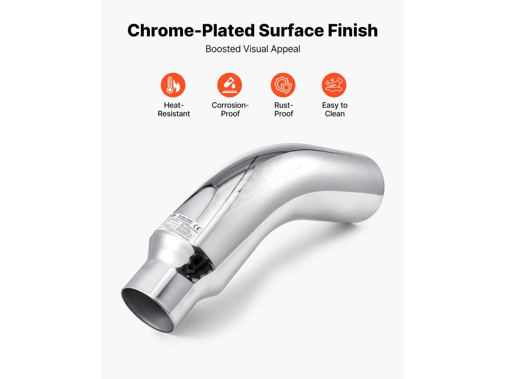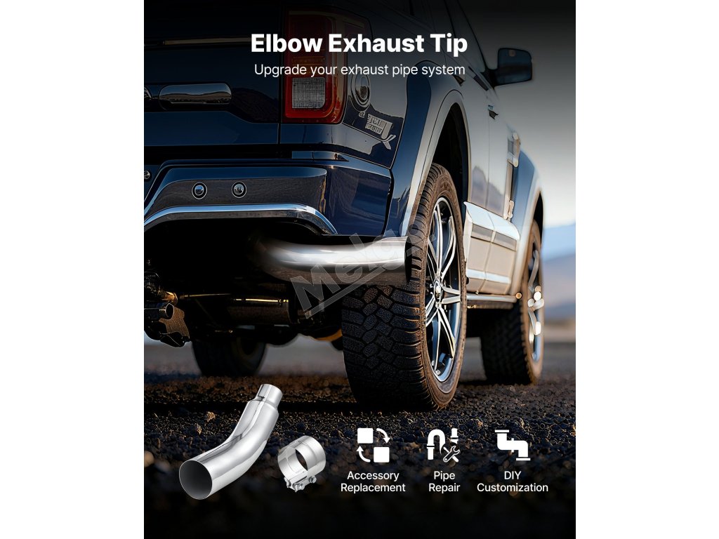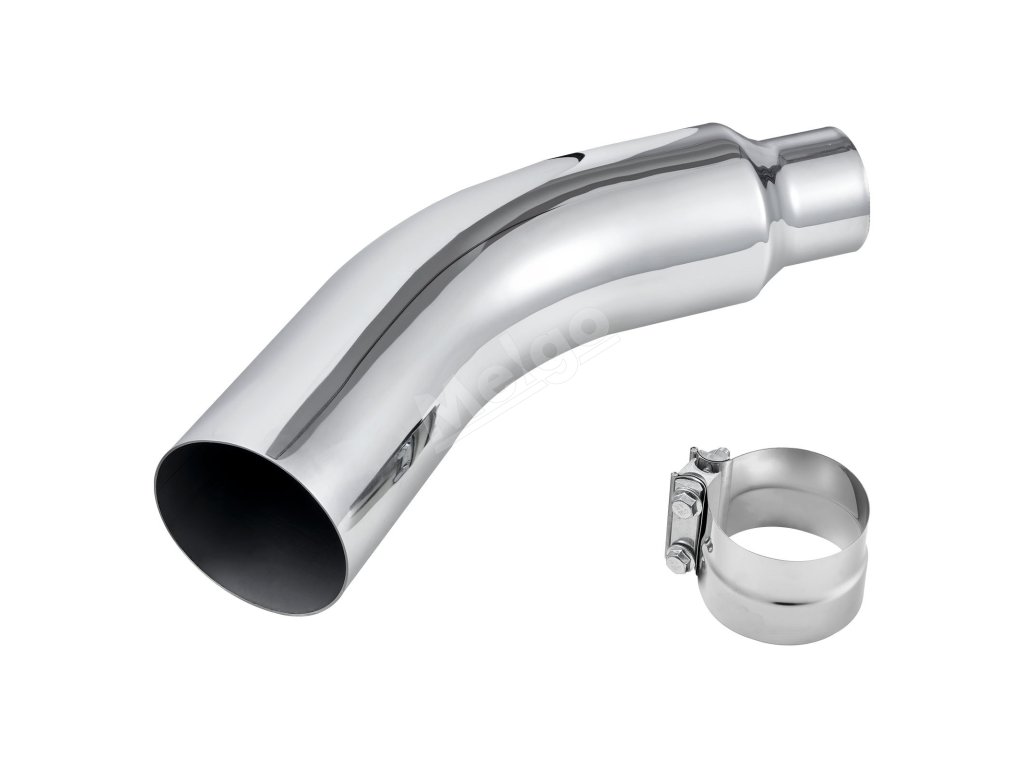 Táto chrómová kolenová koncovka výfuku so striebornou povrchovou úpravou dodáva elegantný vzhľad a zároveň zvyšuje prietok výfukových plynov, čím zvyšuje výkon, silu a zvuk vášho vozidla.