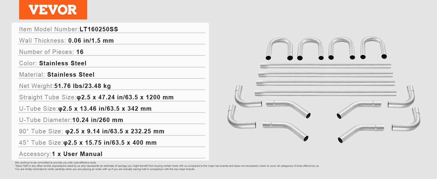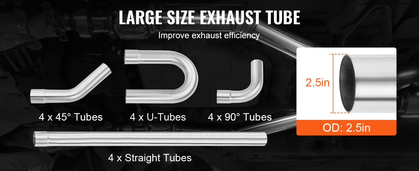 Táto 16-dielna univerzálna sada výfukového potrubia obsahuje všetky potrebné rúrky na úpravu alebo opravu výfukového systému vášho vozidla, vďaka čomu je vhodná na projekty výfukového potrubia, ktoré si môžete vyrobiť sami. Prispôsobte si systém podľa špecifikácií vozidla a osobných preferencií, aby ste dosiahli optimálny výkon a zvuk.