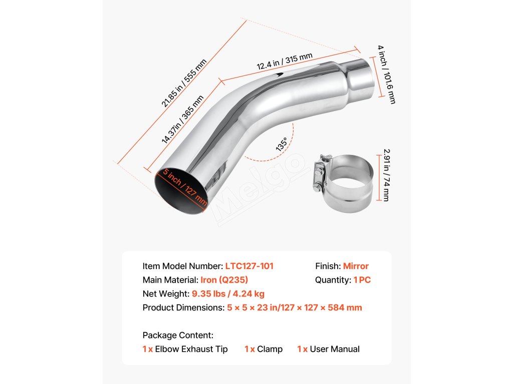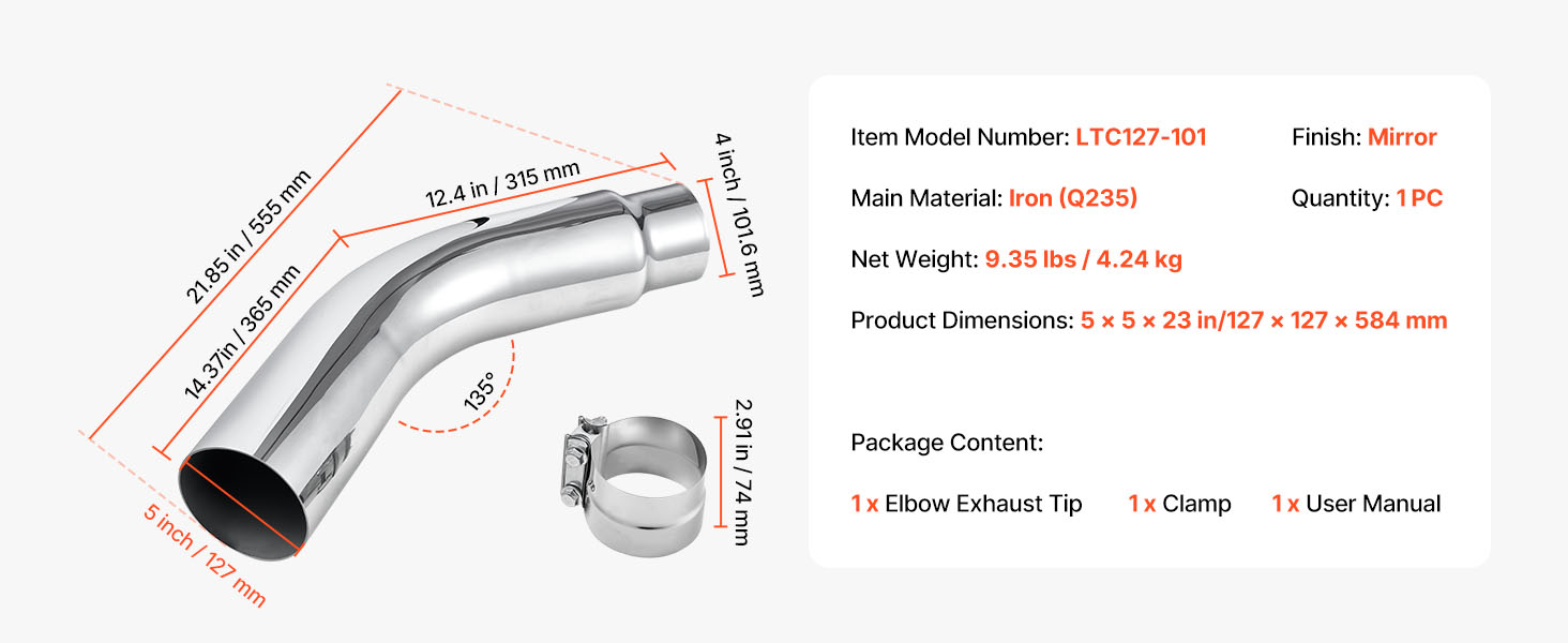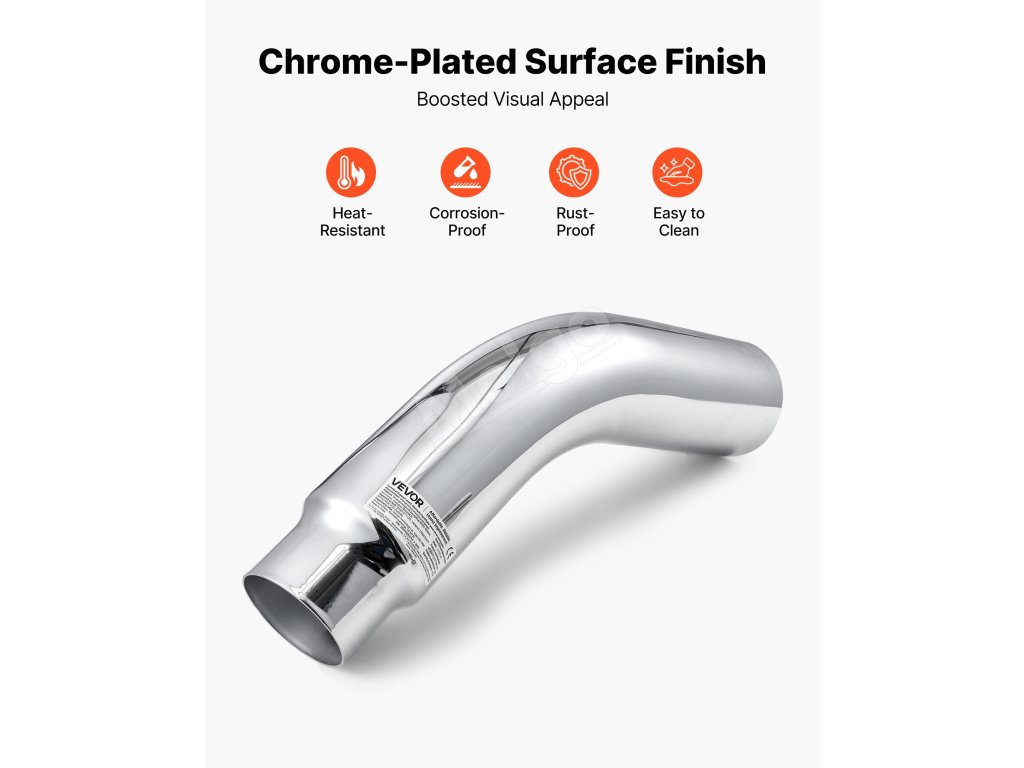 Táto chrómová kolenová koncovka výfuku so striebornou povrchovou úpravou dodáva elegantný vzhľad a zároveň zvyšuje prietok výfukových plynov, čím zvyšuje výkon, silu a zvuk vášho vozidla.