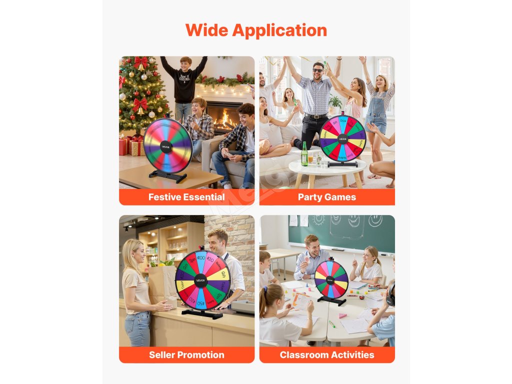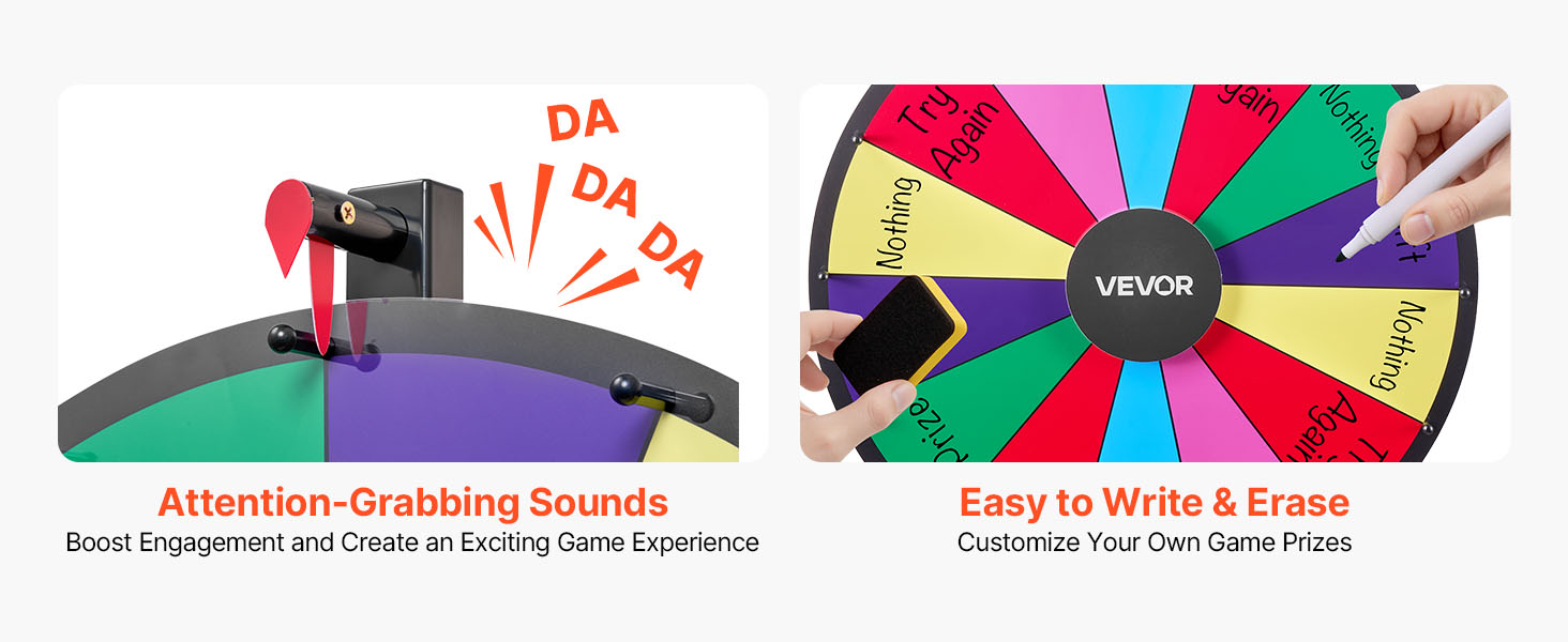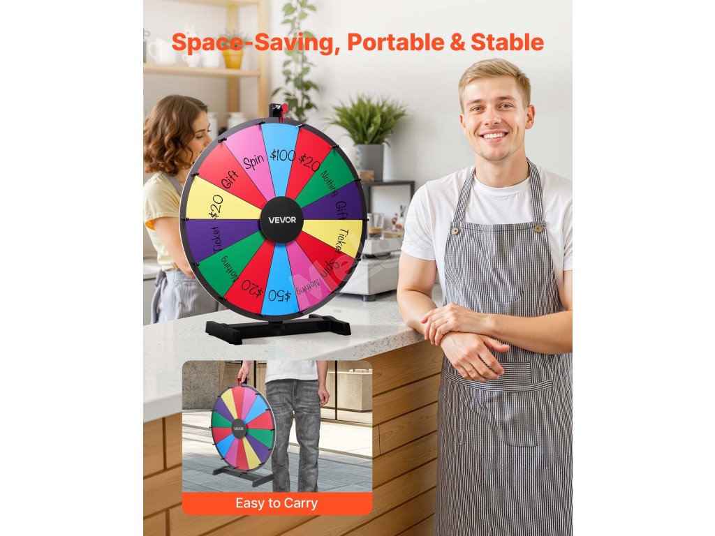 Prineste vzrušenie na akékoľvek podujatie s naším všestranným kolieskom na výhry! Vďaka prispôsobiteľným otvorom, plynulému otáčaniu a odolnej konštrukcii je ideálne na večierky, do tried, na obchodné výstavy a ďalšie podujatia. Je ľahké a ľahko sa nastavuje, čím poskytuje nekonečnú zábavu pre všetky vekové kategórie.
