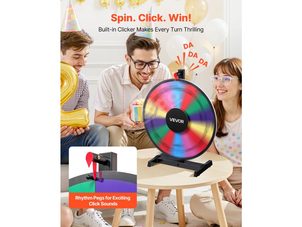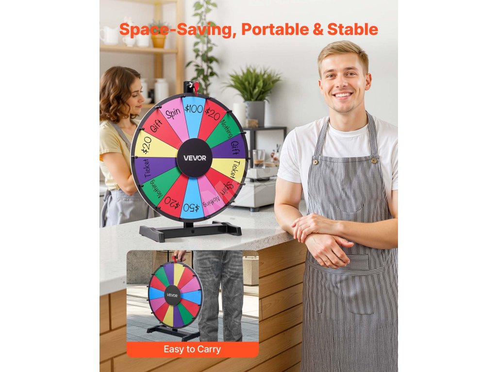 Prineste vzrušenie na akékoľvek podujatie s naším všestranným kolieskom na výhry! Vďaka prispôsobiteľným otvorom, plynulému otáčaniu a odolnej konštrukcii je ideálne na večierky, do tried, na obchodné výstavy a ďalšie podujatia. Je ľahké a ľahko sa nastavuje, čím poskytuje nekonečnú zábavu pre všetky vekové kategórie.