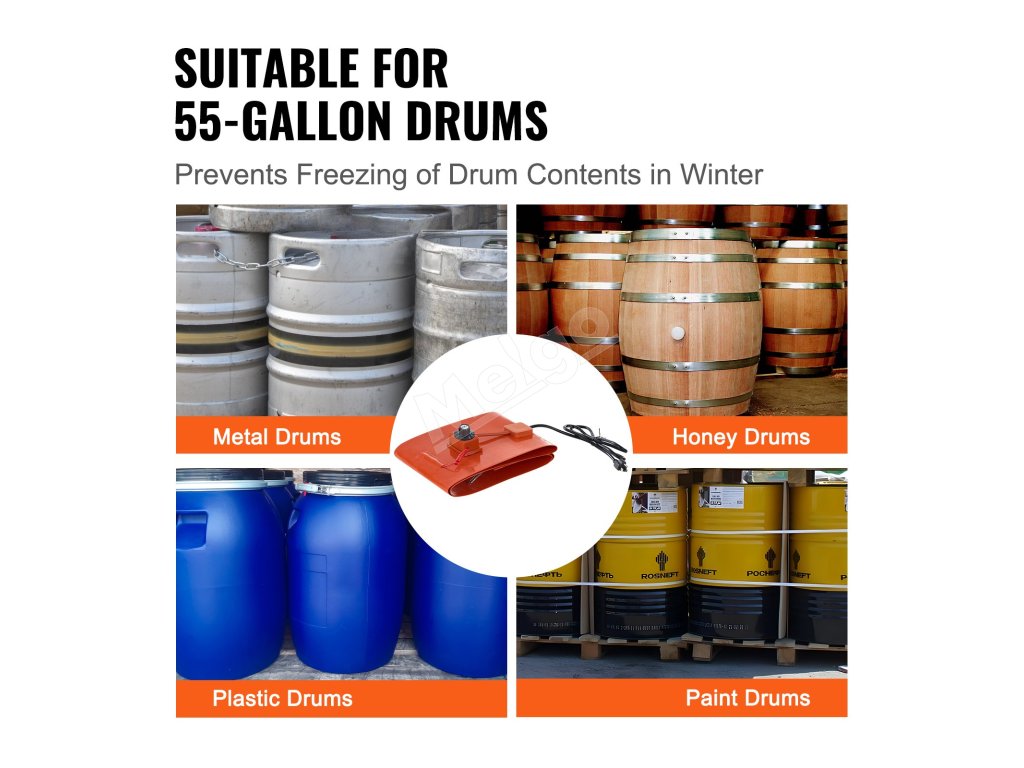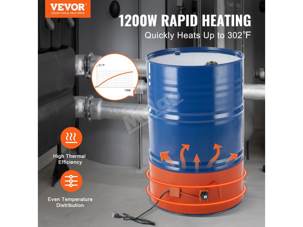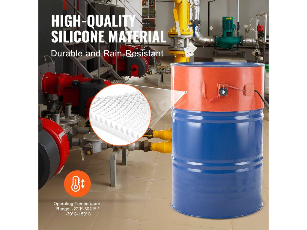 Ohrev kovového sudu 1200 W, šírka 25.4 cm, nastaviteľná 30–150 °C