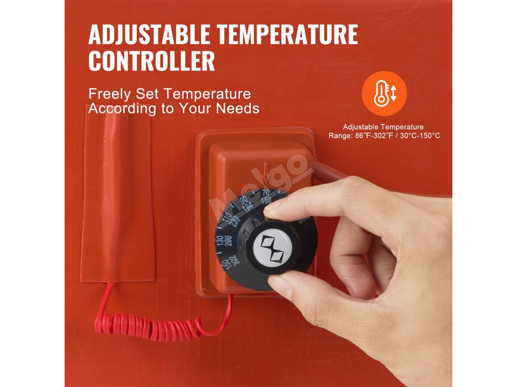 Ergonomický dizajn tejto vyhrievacej deky zabezpečuje jej bezpečné obopnutie okolo vedra, čím zabraňuje skĺznutiu a poskytuje zvýšenú účinnosť vyhrievania.
