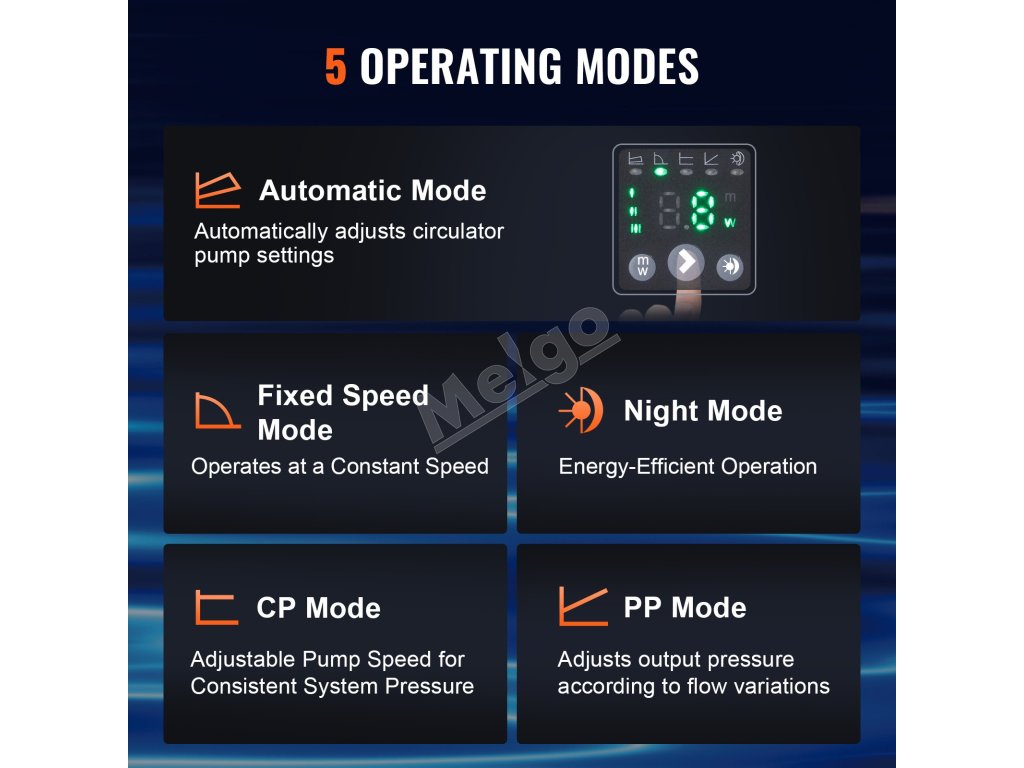 Naše čerpadlo s motorom s permanentnými magnetmi ECM využíva elektronickú komutáciu a vysokoúčinné magnetické materiály na zabezpečenie trvalo vysokej účinnosti a pozoruhodnej úspory energie. Vďaka piatim inteligentným režimom regulácie a spätnému ventilu toto čerpadlo spĺňa všetky vaše potreby v oblasti vykurovania!