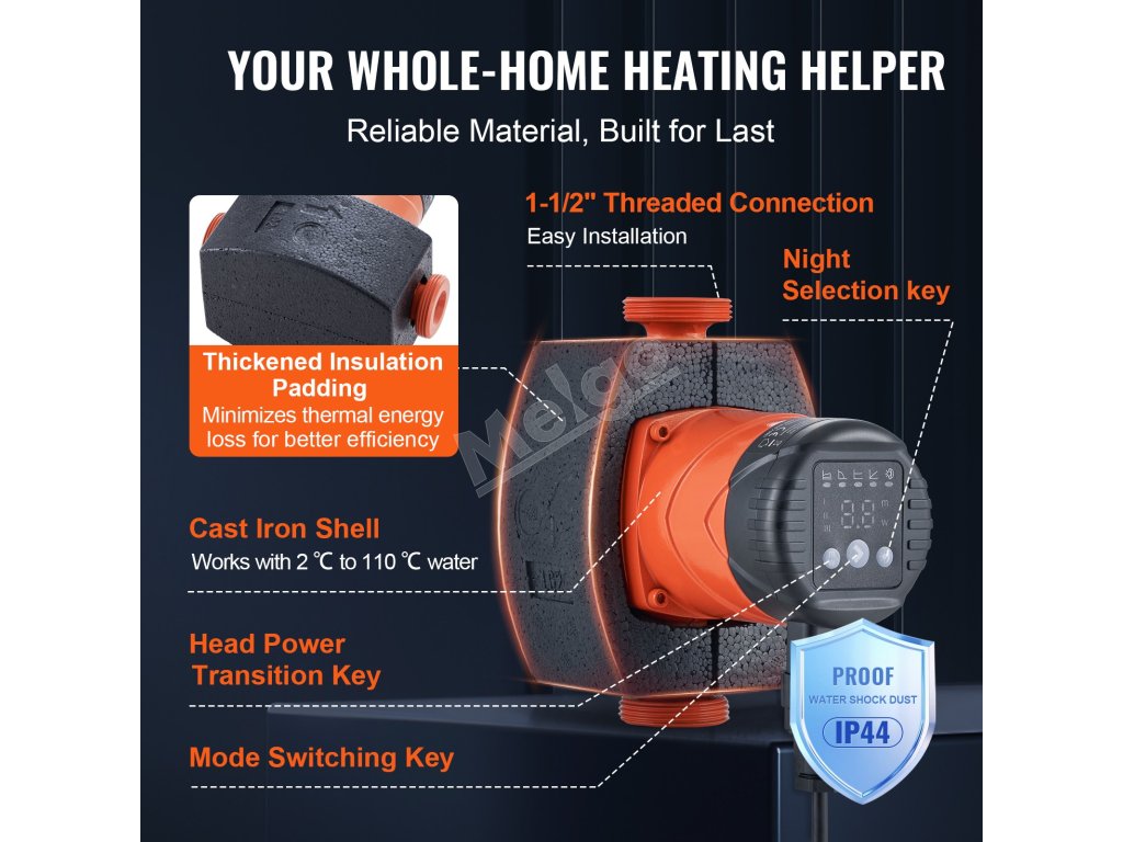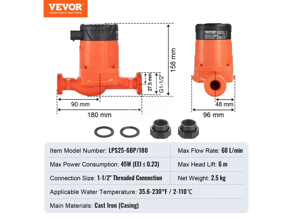 Toto obehové čerpadlo na teplú vodu je navrhnuté s dvoma robustnými gumovými tesniacimi krúžkami, ktoré zabraňujú netesnostiam v miestach pripojenia, čím chránia váš vykurovací systém pred poškodením vodou a pomáhajú vám vyhnúť sa zbytočným opravám alebo plytvaniu vodou.