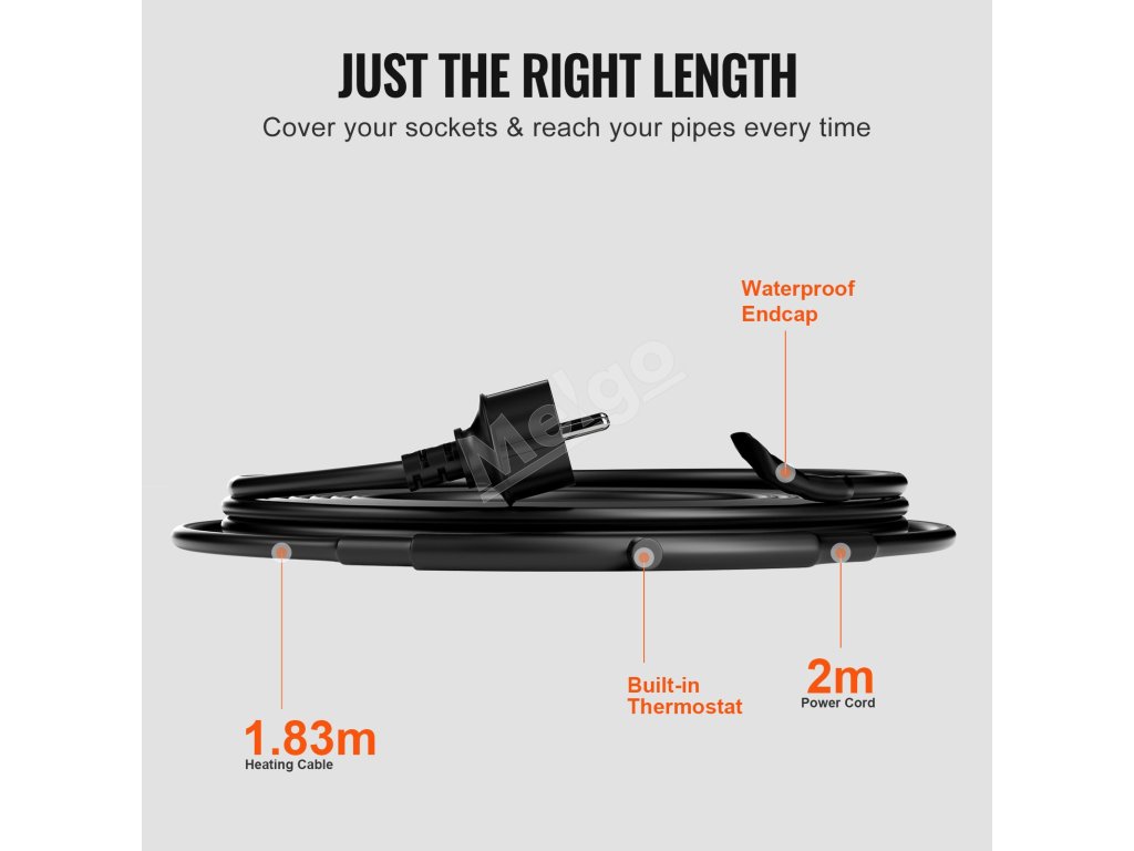 Bez ohľadu na to, či staviate obytný automobil v mrazivom podnebí, alebo chcete udržať plynulý tok vody v domácnosti alebo na záhrade, náš 1,83 m dlhý kábel na ohrev vodovodného potrubia s výkonom 16,4 W/m so samoregulačnou technológiou a zabudovaným termostatom je ideálnou voľbou. Inteligentná ochrana proti zamrznutiu pre pokoj v duši.