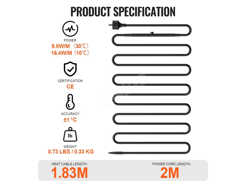 Tento kábel na ohrev potrubia je vybavený pokročilou samoregulačnou technológiou, ktorá automaticky upravuje výkon ohrevu na základe okolitej teploty. Vďaka zabudovanému termostatu sa automaticky zapne pri 43℉ / 6 ℃ a prestane pracovať pri 55℉ / 13 ℃, čím sa eliminuje potreba neustáleho monitorovania.