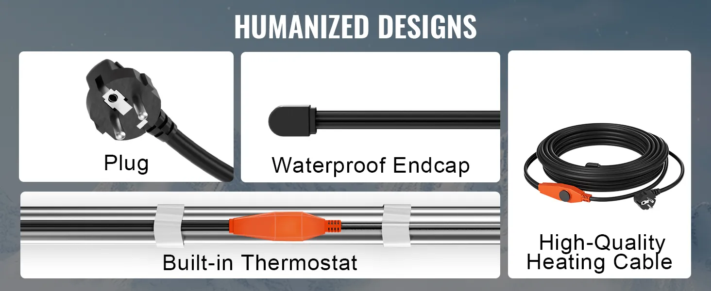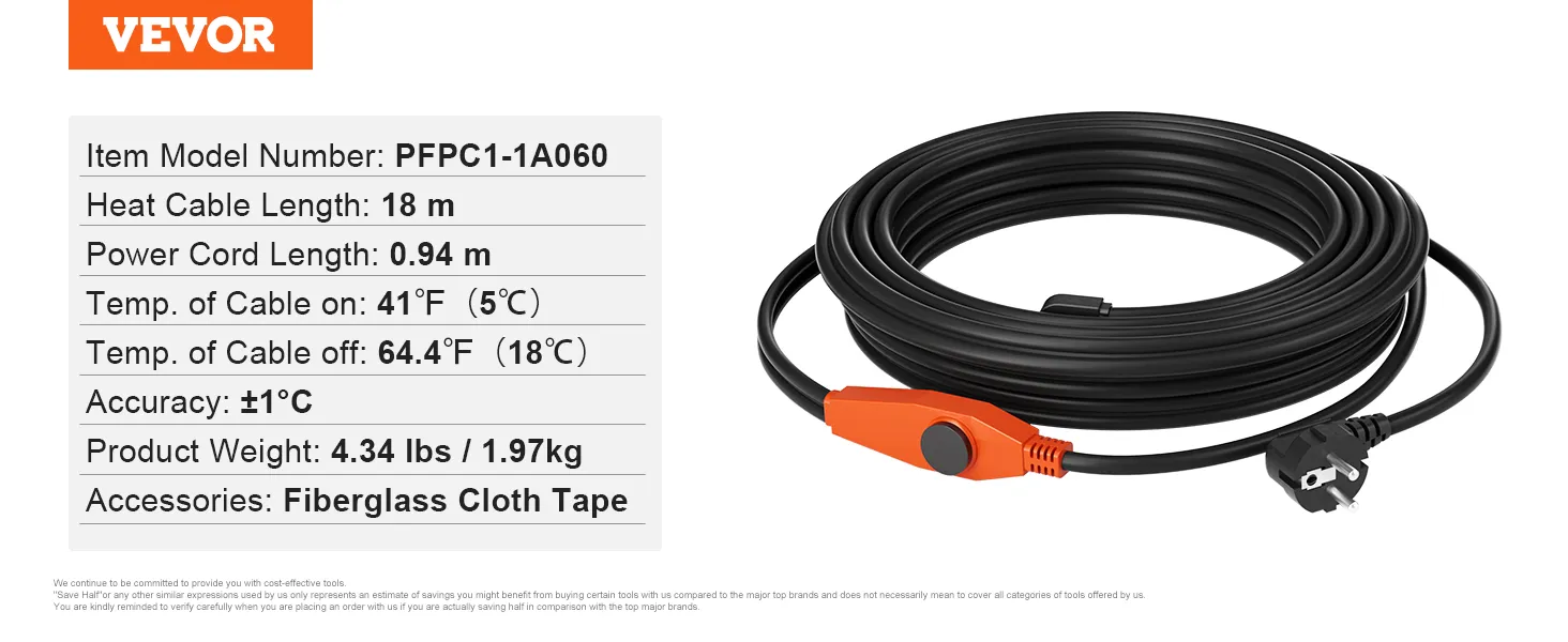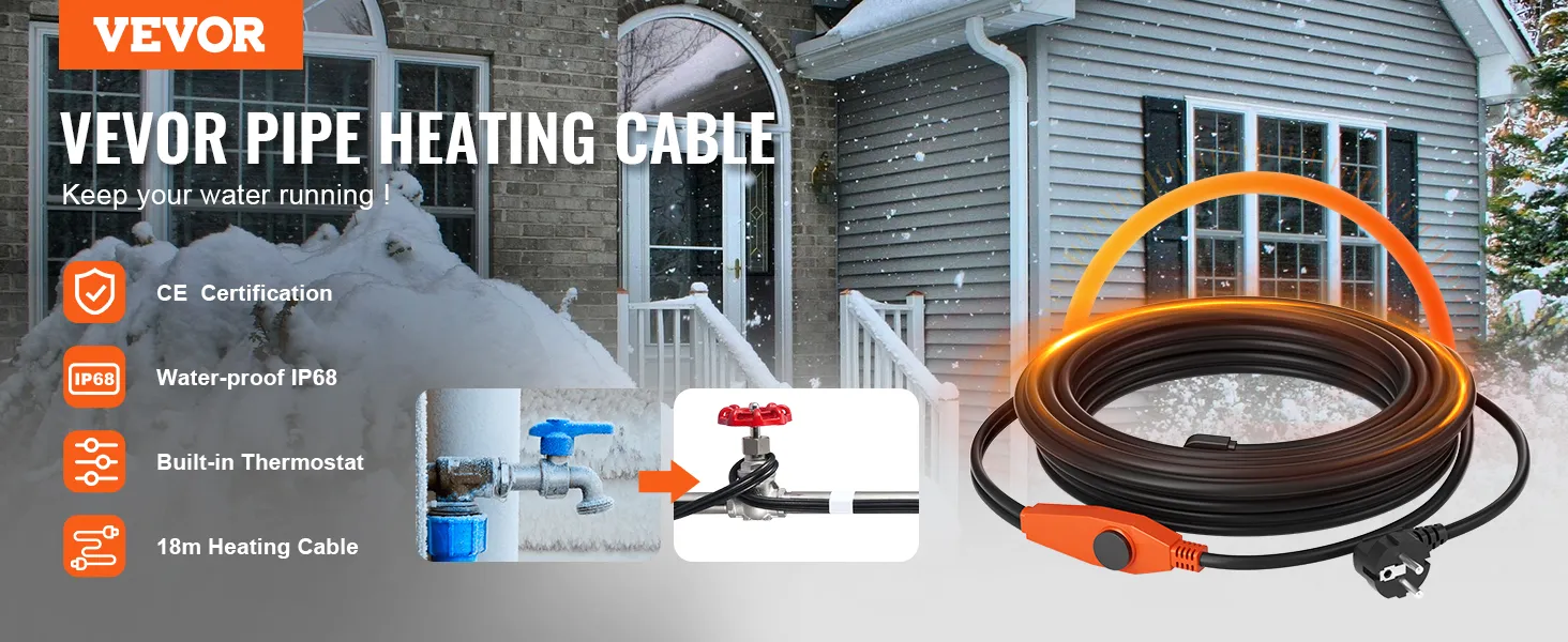 Ak staviate obytný automobil v mrazivom podnebí alebo chcete, aby voda vo vodovodnom potrubí v dome alebo na záhrade tiekla bez prerušenia? Náš 18 m ohrievací kábel na vodovodné potrubie s konštantným výkonom 23 W/m a zabudovaným termostatom je ideálnou voľbou, ktorá účinne zabráni zamrznutiu vášho vodovodného potrubia.