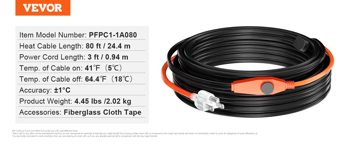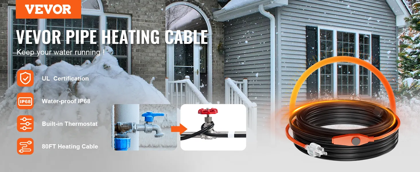 Ak staviate obytný automobil v mrazivom podnebí alebo chcete, aby voda vo vodovodnom potrubí v dome alebo na záhrade tiekla bez prerušenia? Náš 25 m ohrievací kábel na vodovodné potrubie s konštantným výkonom 23 W/m a zabudovaným termostatom je ideálnou voľbou, ktorá účinne zabráni zamrznutiu vášho vodovodného potrubia.